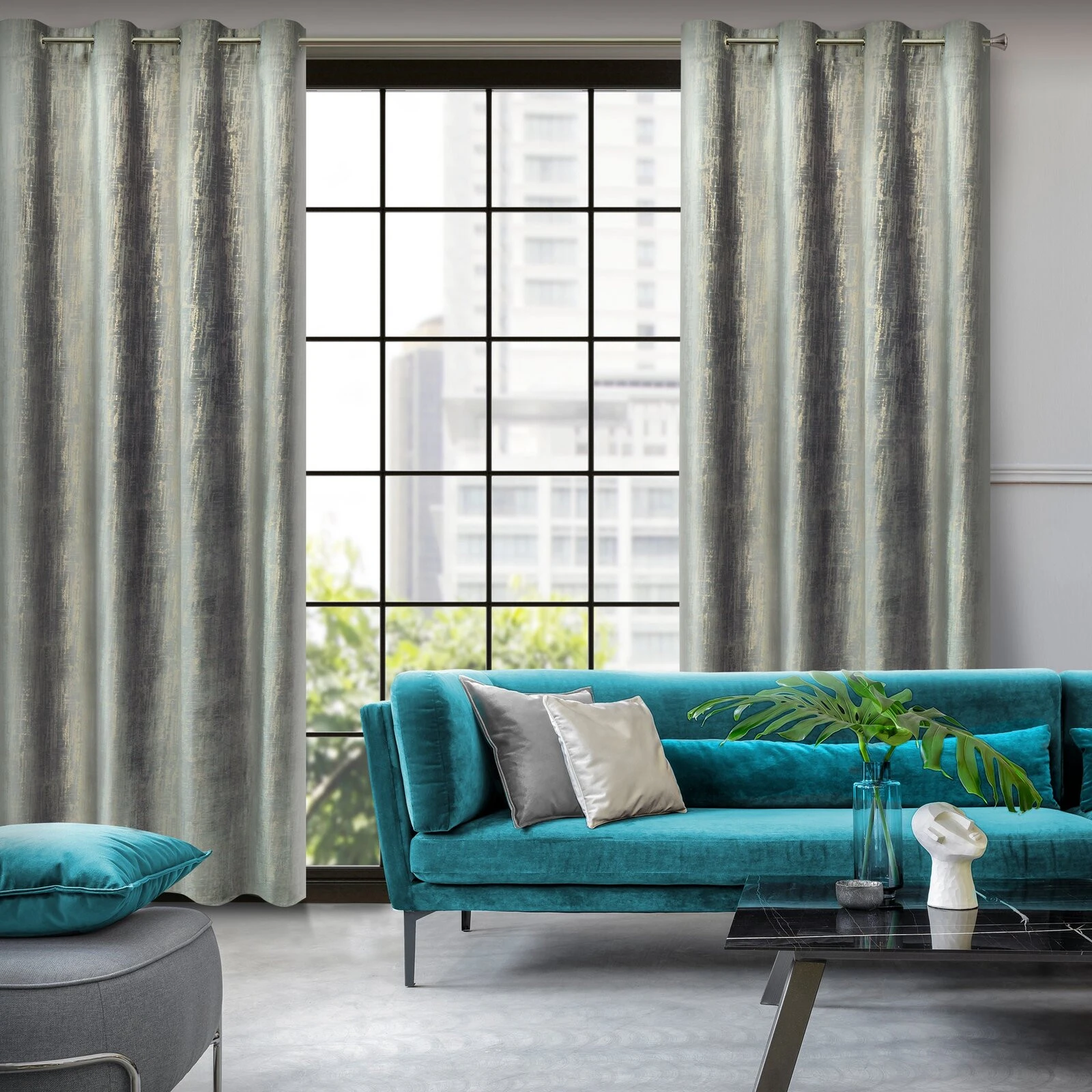 - Zasłona welwetowa zdobiona szampańskim nadrukiem szerokość: 140 cm, długość: 250 cm, kolor: szary, Gramatura: 200 GSM, Skład: 100% poliester