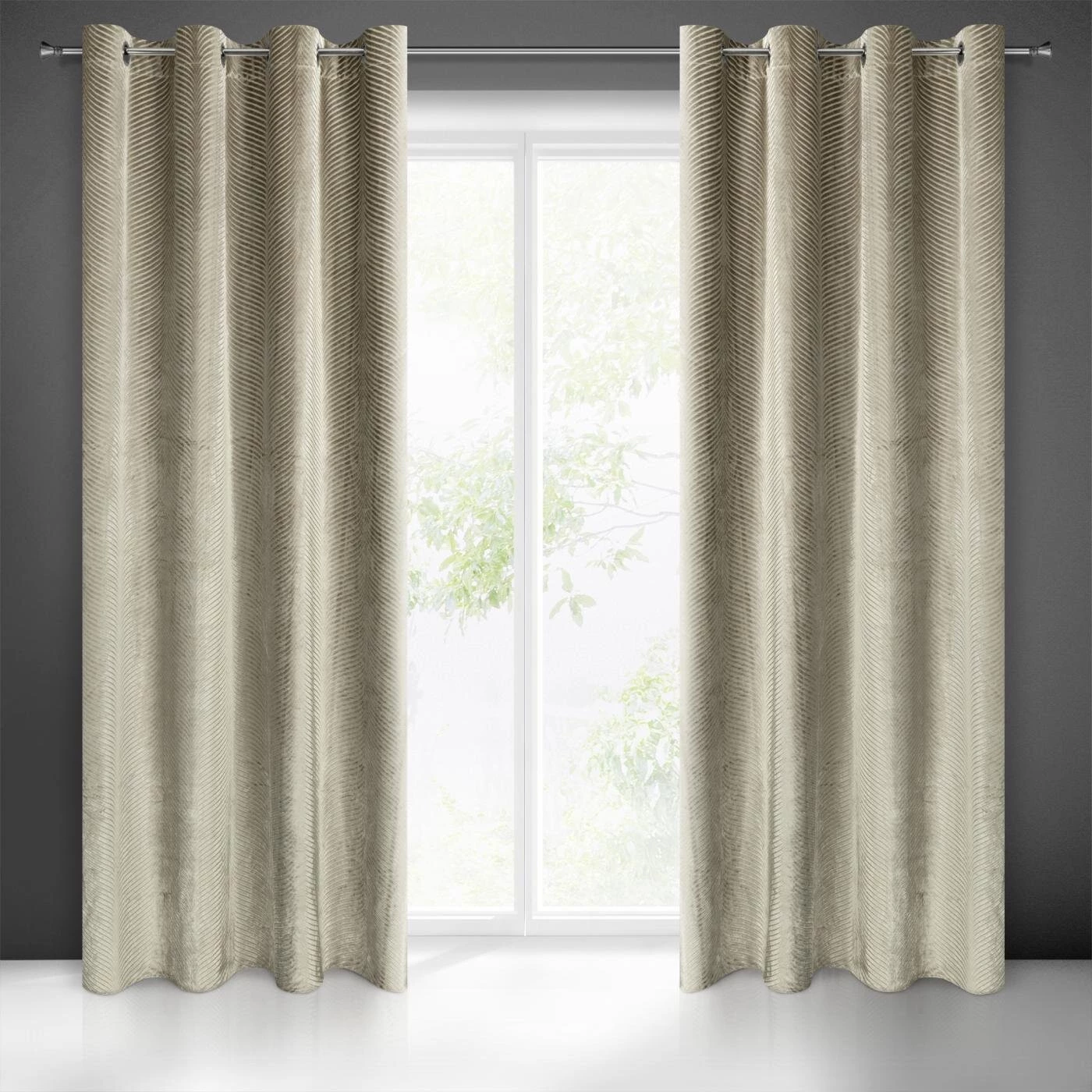 Zasłona z welwetu żakardowego, błyszcząca z motywem geometrycznym szerokość: 140 cm, długość: 250 cm, kolor: jasnobrązowy, Gramatura: 390 GSM, Skład: 100% poliester