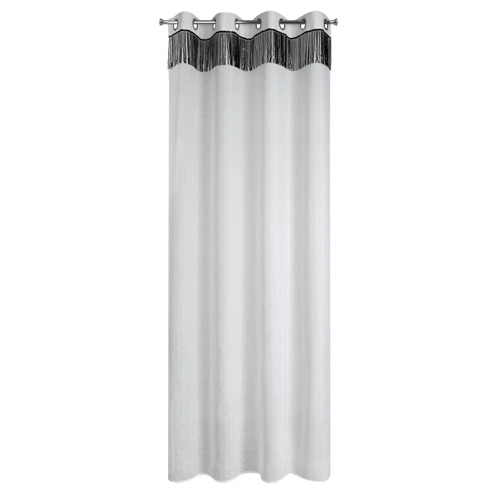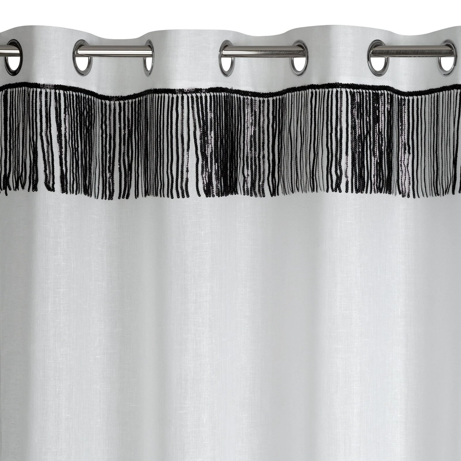 Firana jednokolorowa o strukturze drobnego deszczyku z taśmą cekinową szerokość: 140 cm, długość: 250 cm, kolor: biały, Gramatura: 90 GSM, Skład: 100% poliester