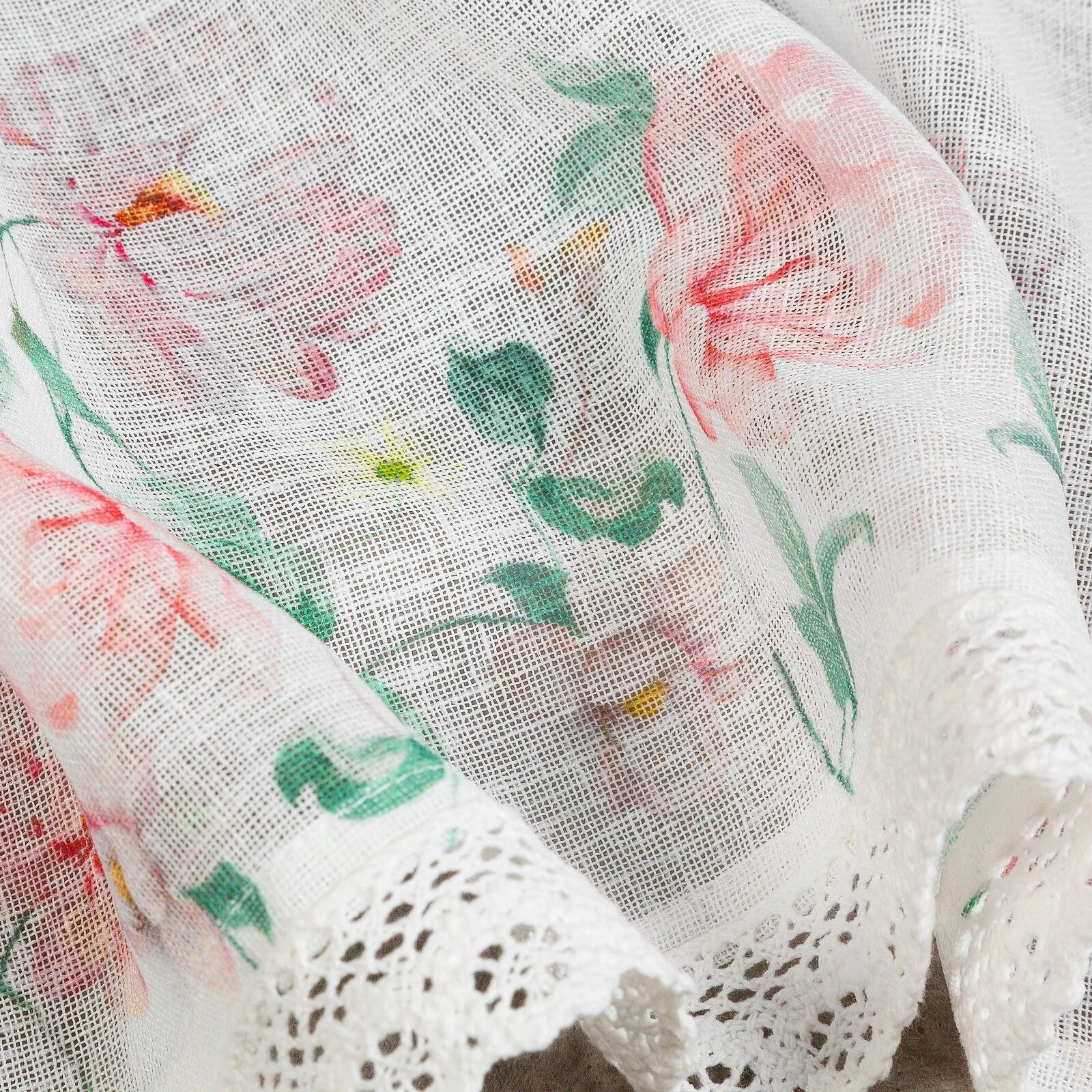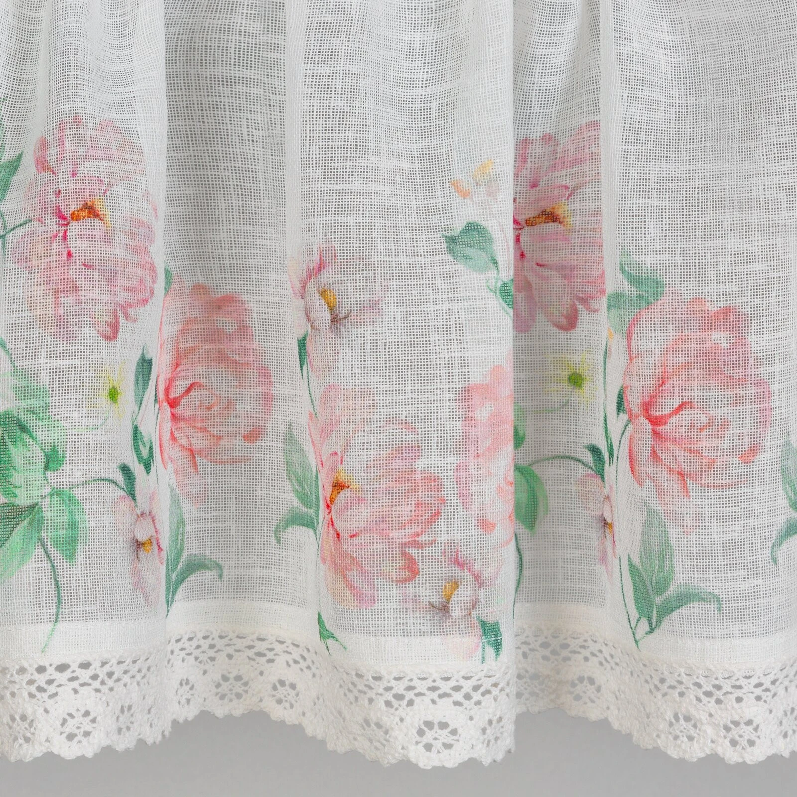 - Zazdrostka z nadrukiem zdobiona koronką szerokość: 150 cm, długość: 30 cm, kolor: biały, Gramatura: 165 GSM, Skład: 100% poliester