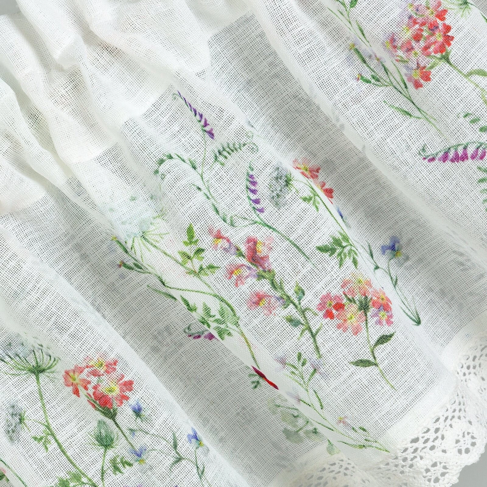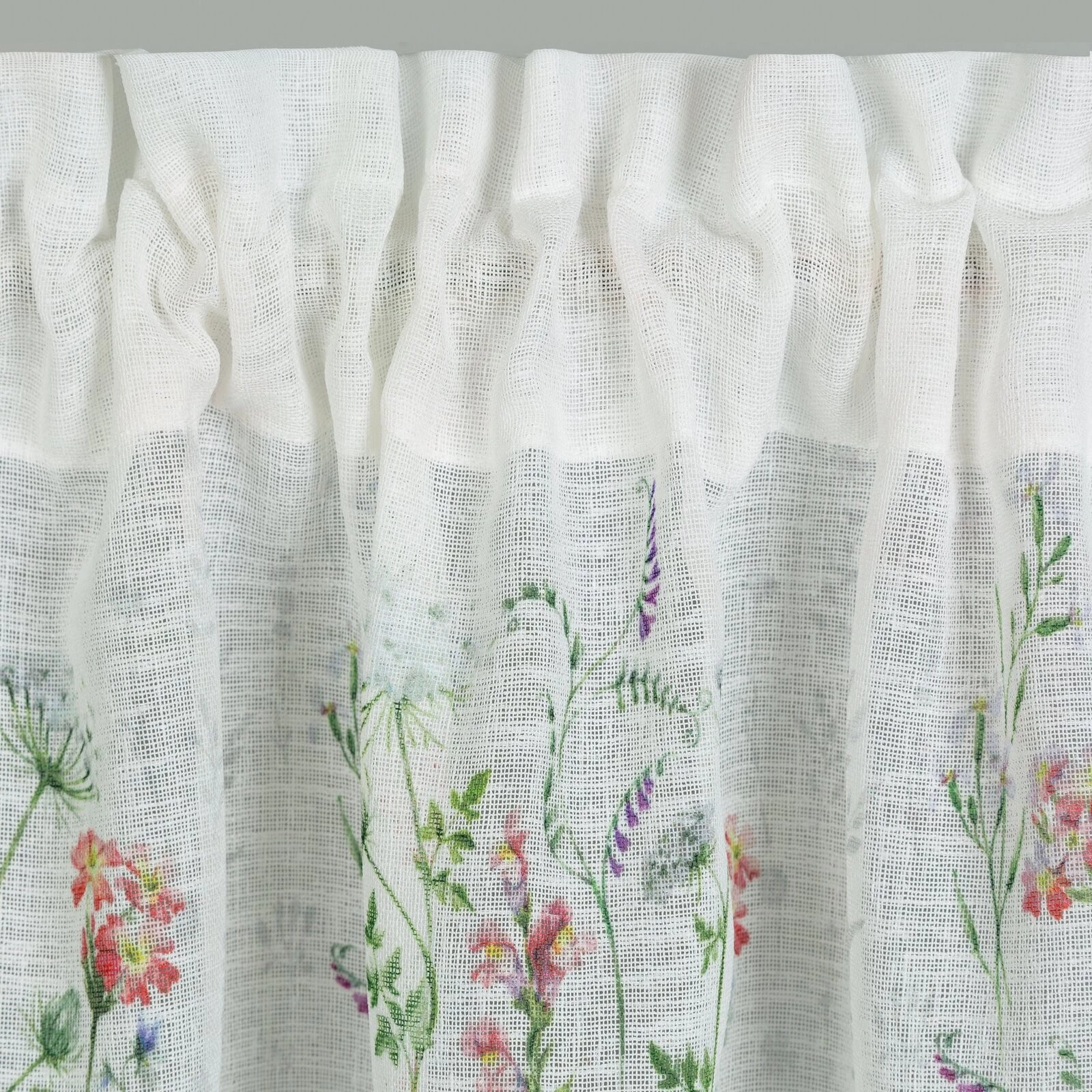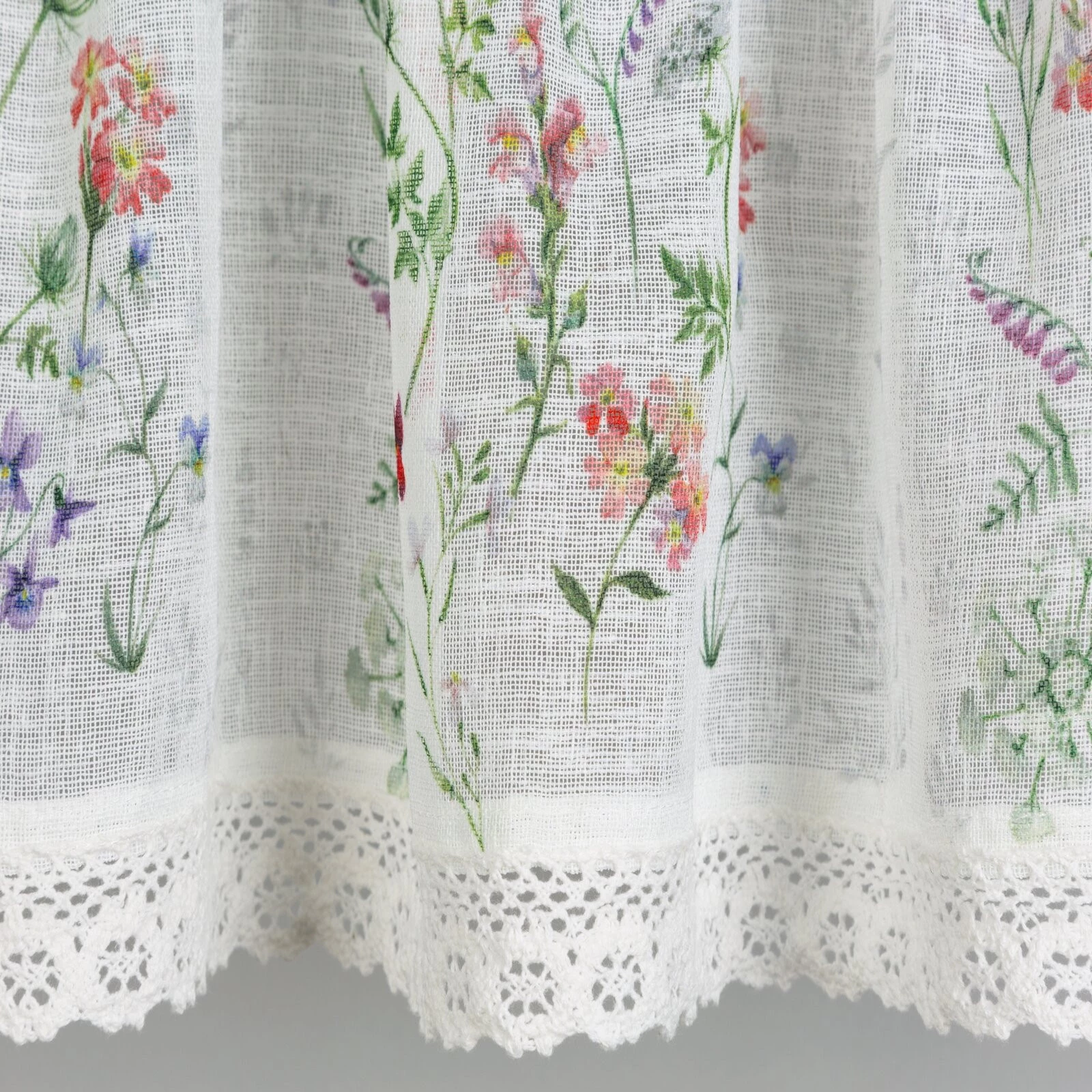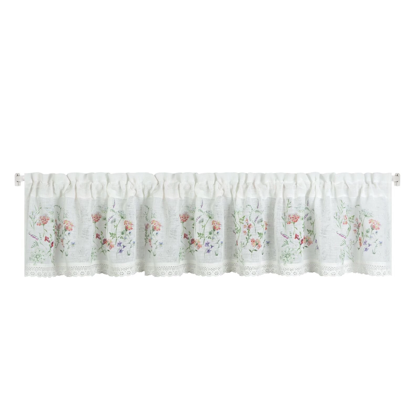 - Zazdrostka z nadrukiem zdobiona koronką szerokość: 150 cm, długość: 30 cm, kolor: biały, Gramatura: 110 GSM, Skład: 100% poliester