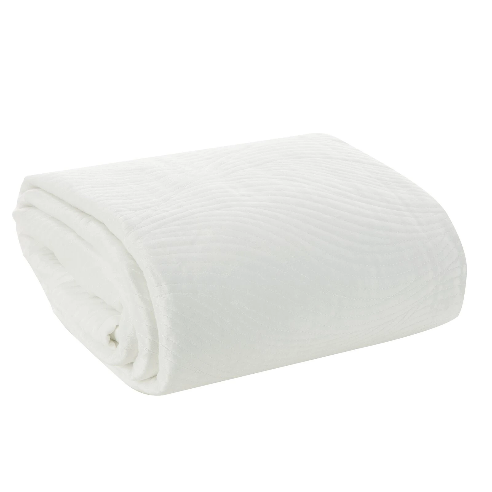 Narzuta welwetowa,przeszywana nicią szerokość: 170 cm, długość: 210 cm, kolor: biały, Gramatura: 250+75+120 GSM, Skład: 100% poliester