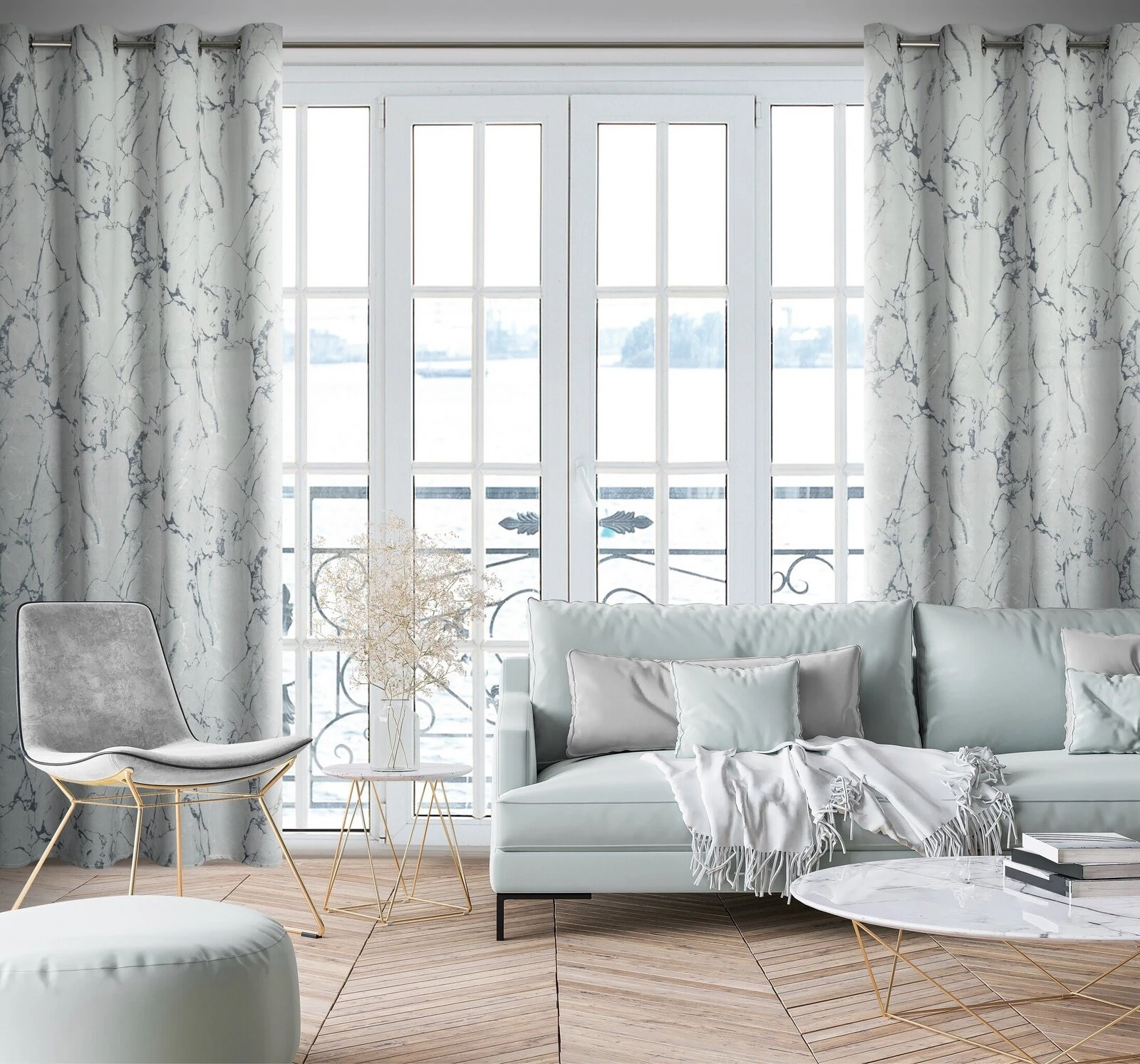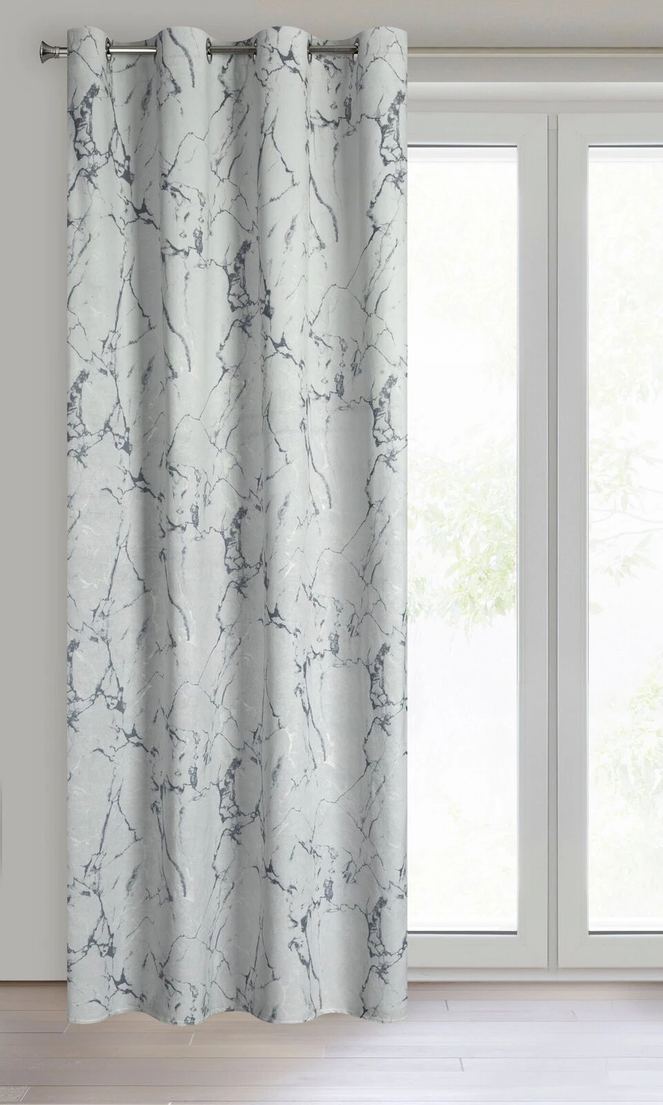 Zasłona welwetowa z efektem marmuryzacji szerokość: 140 cm, długość: 250 cm, kolor: jasnoszary, Gramatura: 200 GSM, Skład: 100% poliester