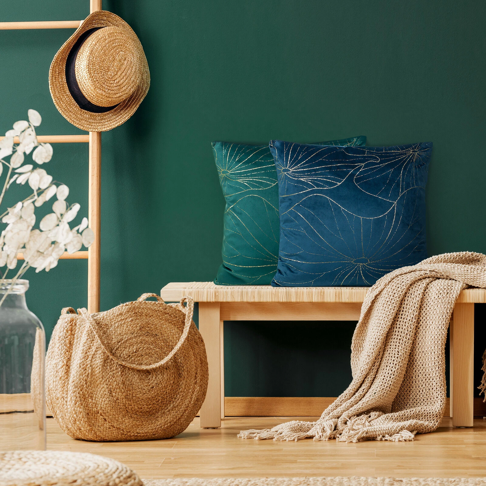 Welwetowa poszewka z nadrukiem szerokość: 45 cm, długość: 45 cm, kolor: ciemnozielony, Gramatura: 250 GSM, Skład: 100% poliester