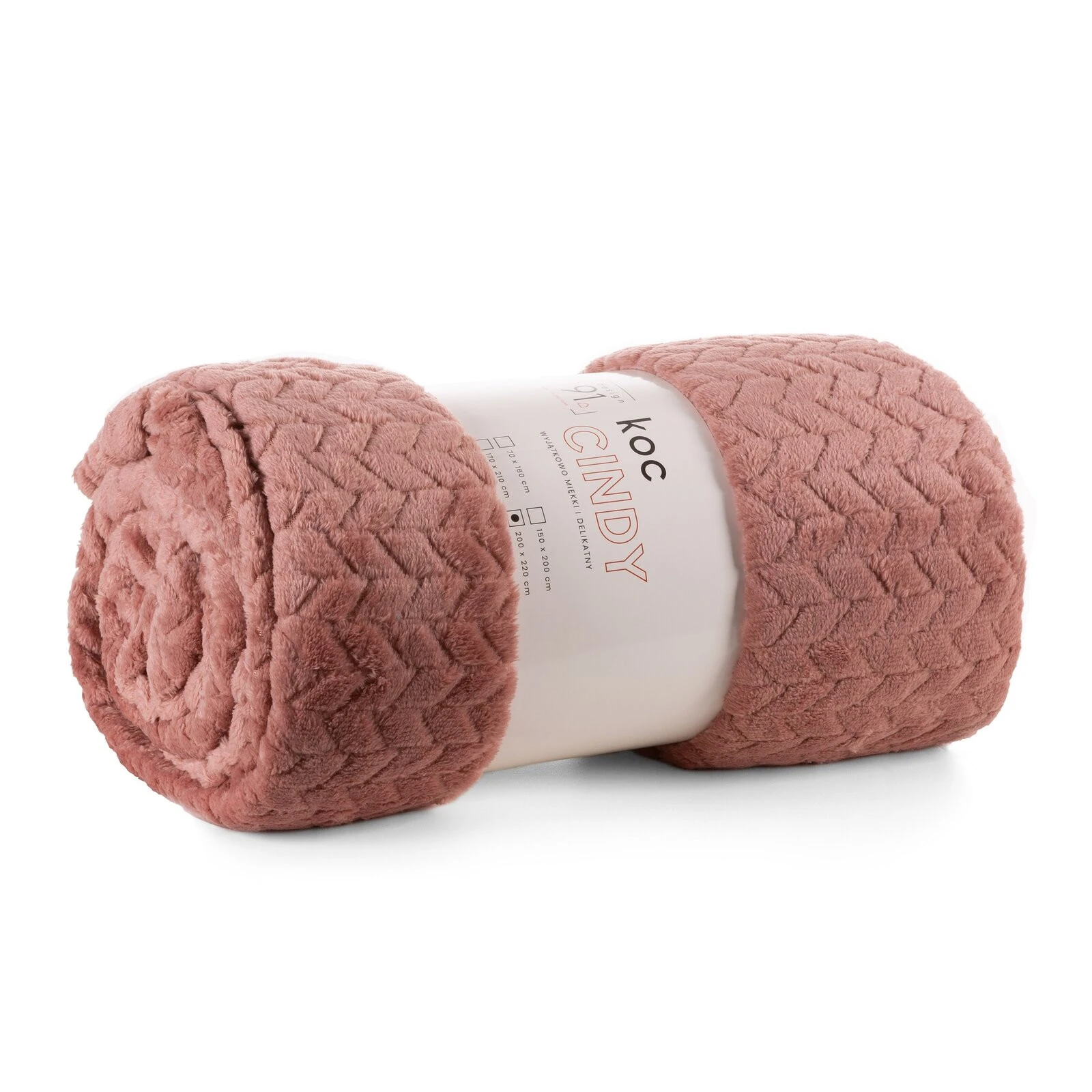 - Klasyczny koc z przyjemnego w dotyku włókna w technologii mikroflano. Jednobarwna, puszysta faktura ozdobiona jest minimalistycznym tłoczeniem w formie jodełki. szerokość: 200 cm, długość: 220 cm, kolor: pudrowy róż, Gramatura: 250 GSM, Skład: 100% polies