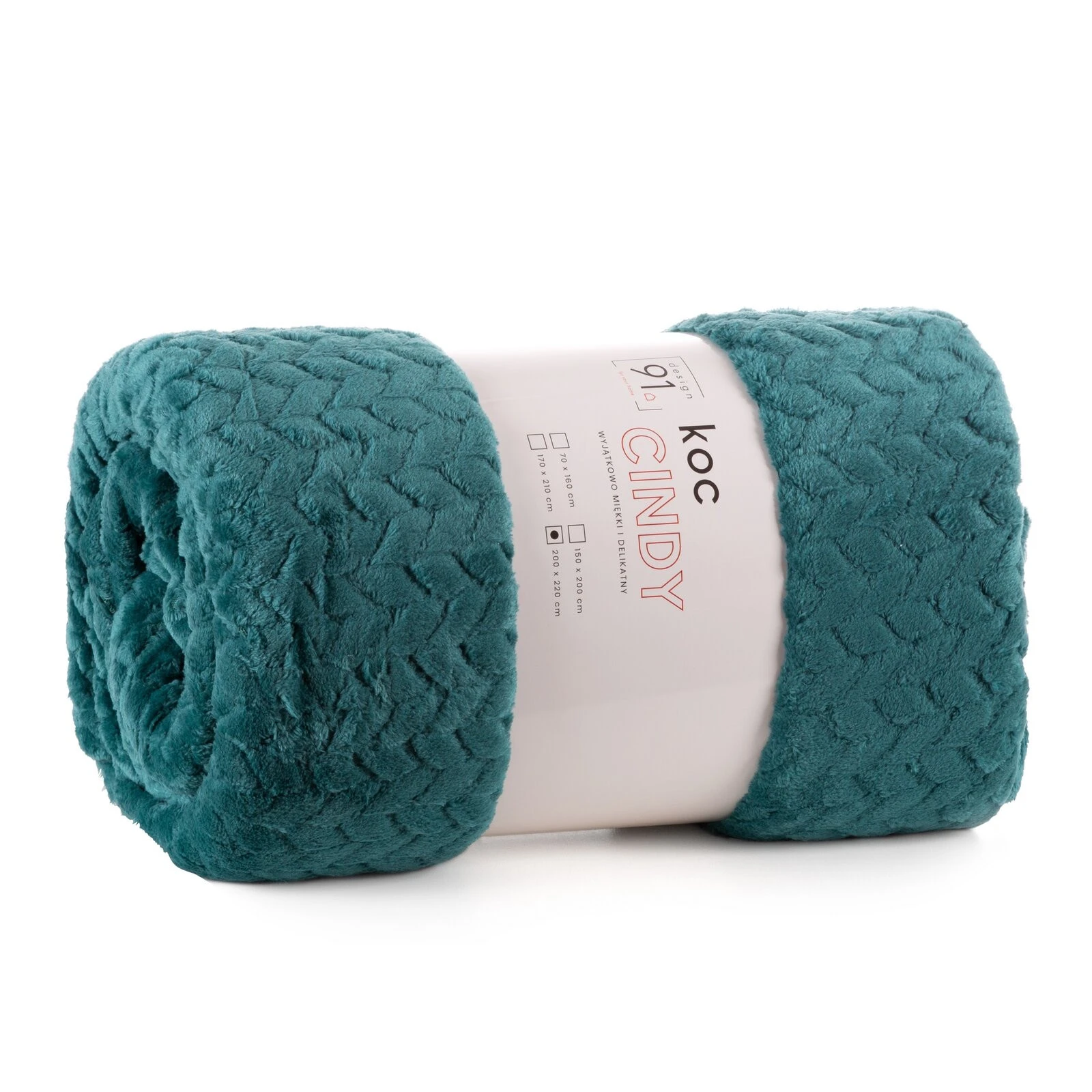 - Klasyczny koc z przyjemnego w dotyku włókna w technologii mikroflano. Jednobarwna, puszysta faktura ozdobiona jest minimalistycznym tłoczeniem w formie jodełki. szerokość: 200 cm, długość: 220 cm, kolor: ciemnoturkusowy, Gramatura: 250GSM GSM, Skład: 100%
