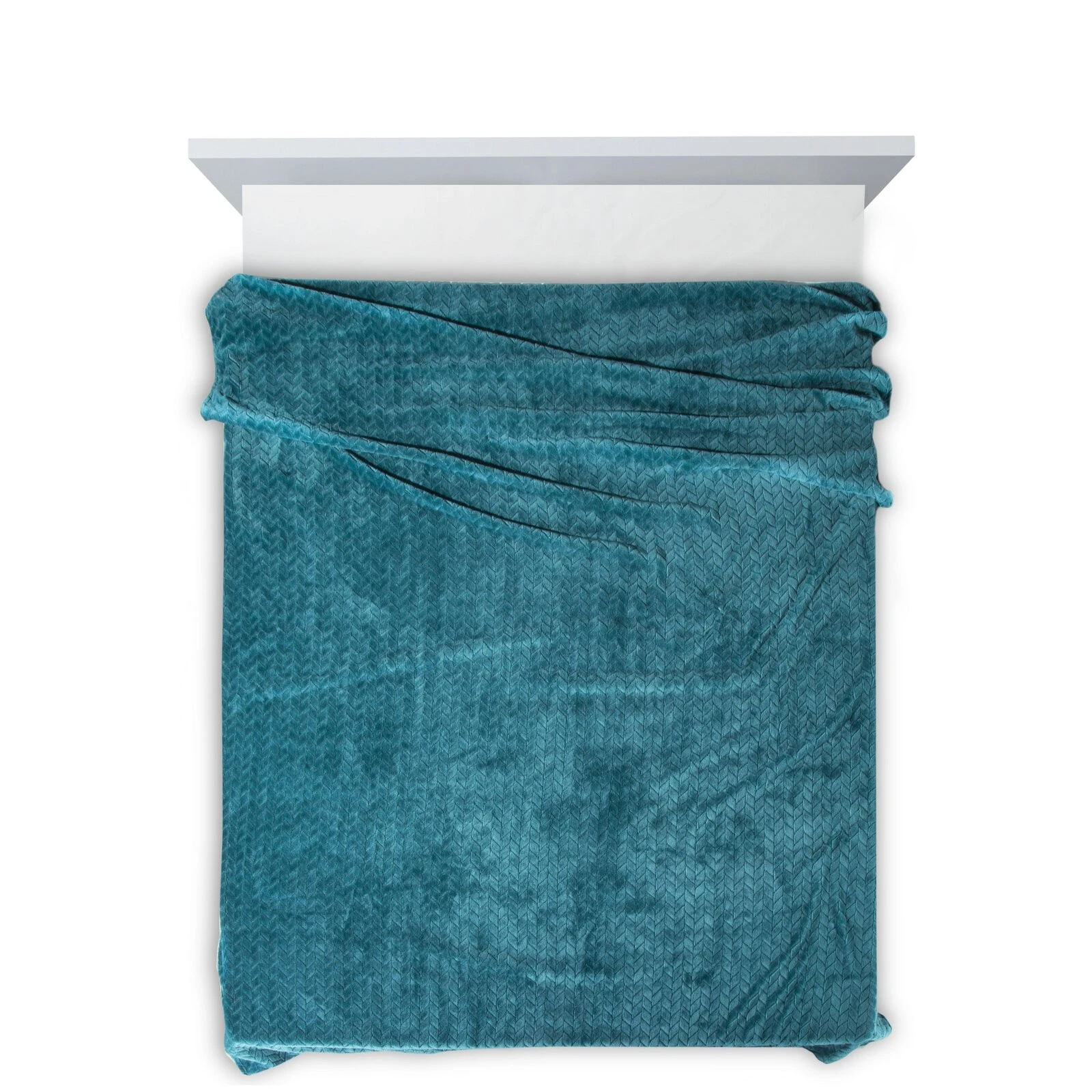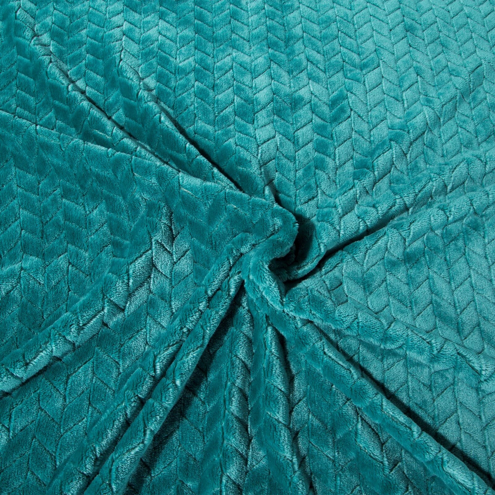 Klasyczny koc z przyjemnego w dotyku włókna w technologii mikroflano. Jednobarwna, puszysta faktura ozdobiona jest minimalistycznym tłoczeniem w formie jodełki. szerokość: 200 cm, długość: 220 cm, kolor: ciemnoturkusowy, Gramatura: 250GSM GSM, Skład: 100% poliester