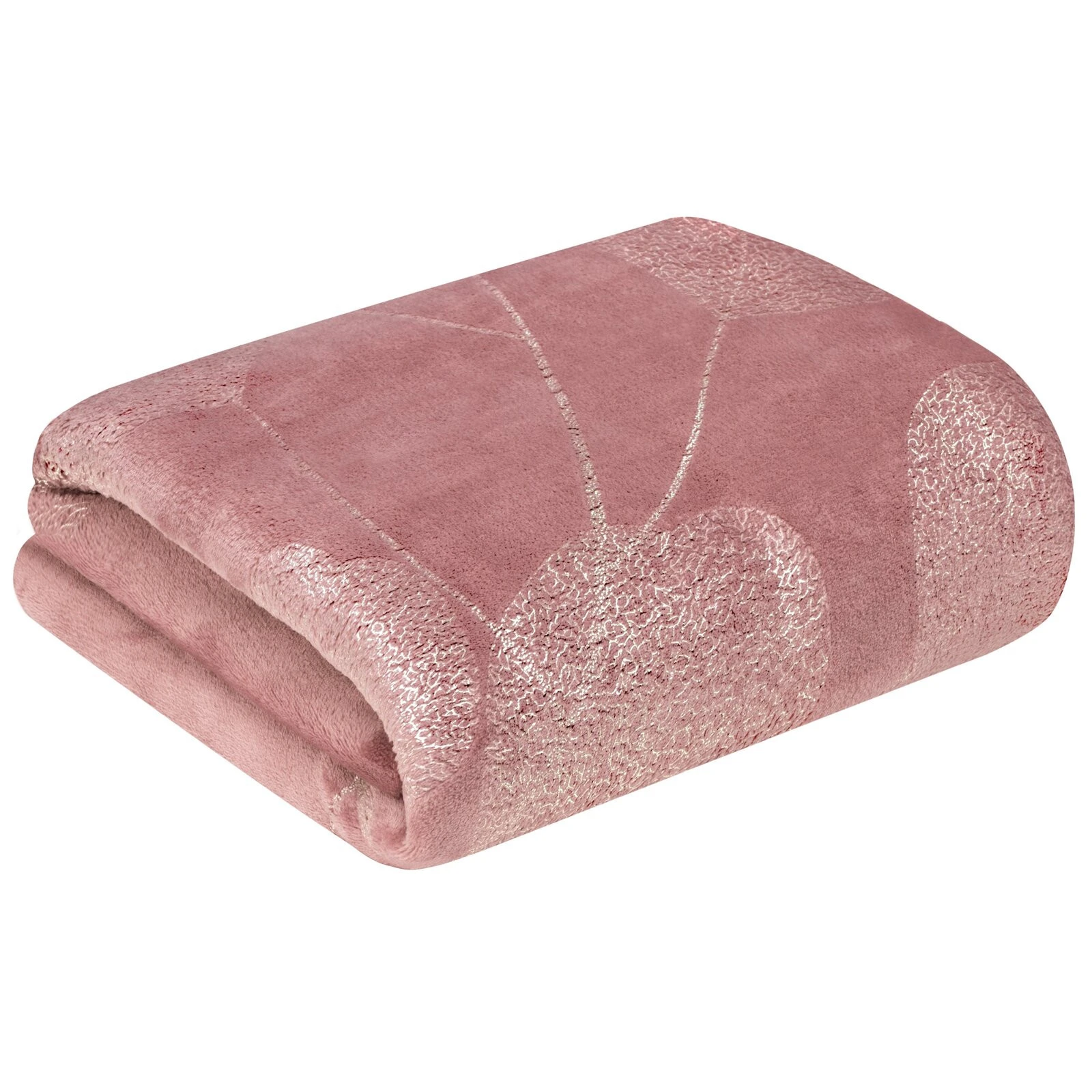 Koc flano bardzo miękki w dotyku z błyszczącym nadrukiem szerokość: 150 cm, długość: 200 cm, kolor: różowy, Gramatura: 250 GSM, Skład: 100% poliester