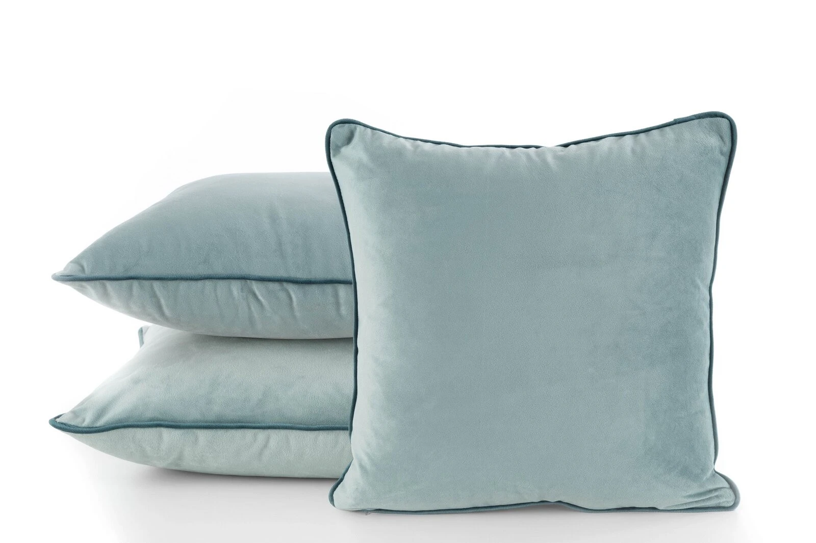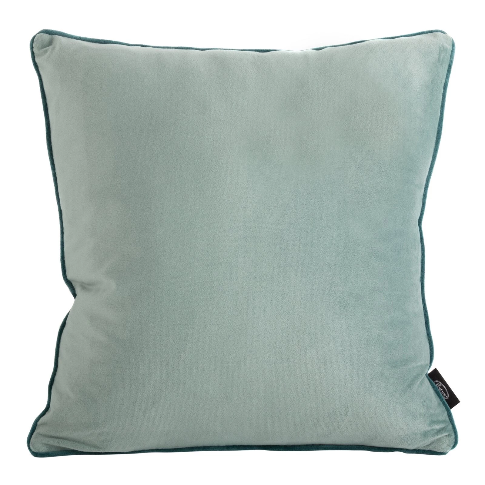 Poszewka welwetowa zdobiona lamówką szerokość: 40 cm, długość: 40 cm, kolor: szałwiowy, Gramatura: 200 GSM, Skład: 100% poliester