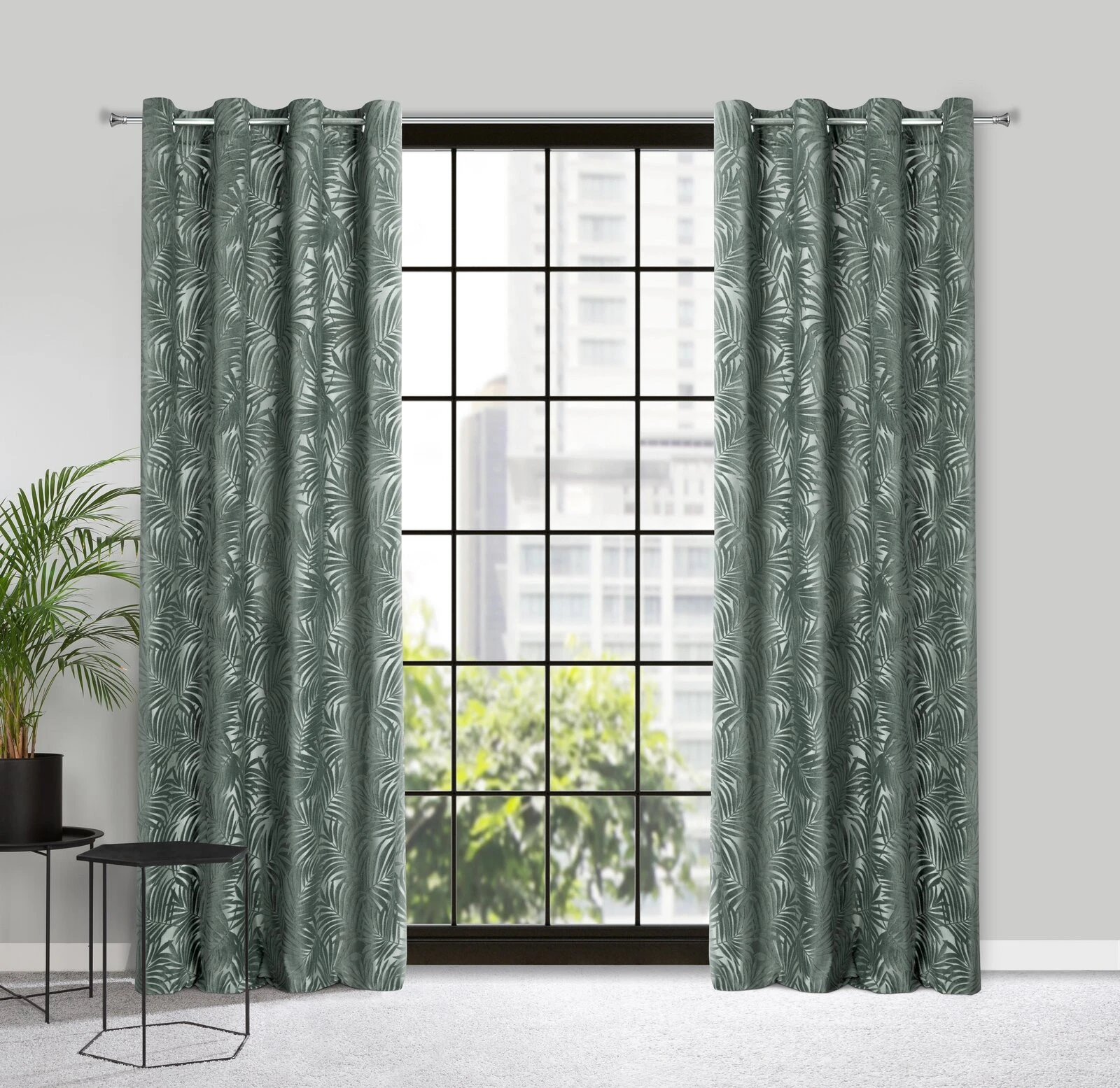 - Zasłona jednokolorowa z motywem roślinnym szerokość: 140 cm, długość: 250 cm, kolor: oliwkowy, Gramatura: 320 GSM, Skład: 100% poliester