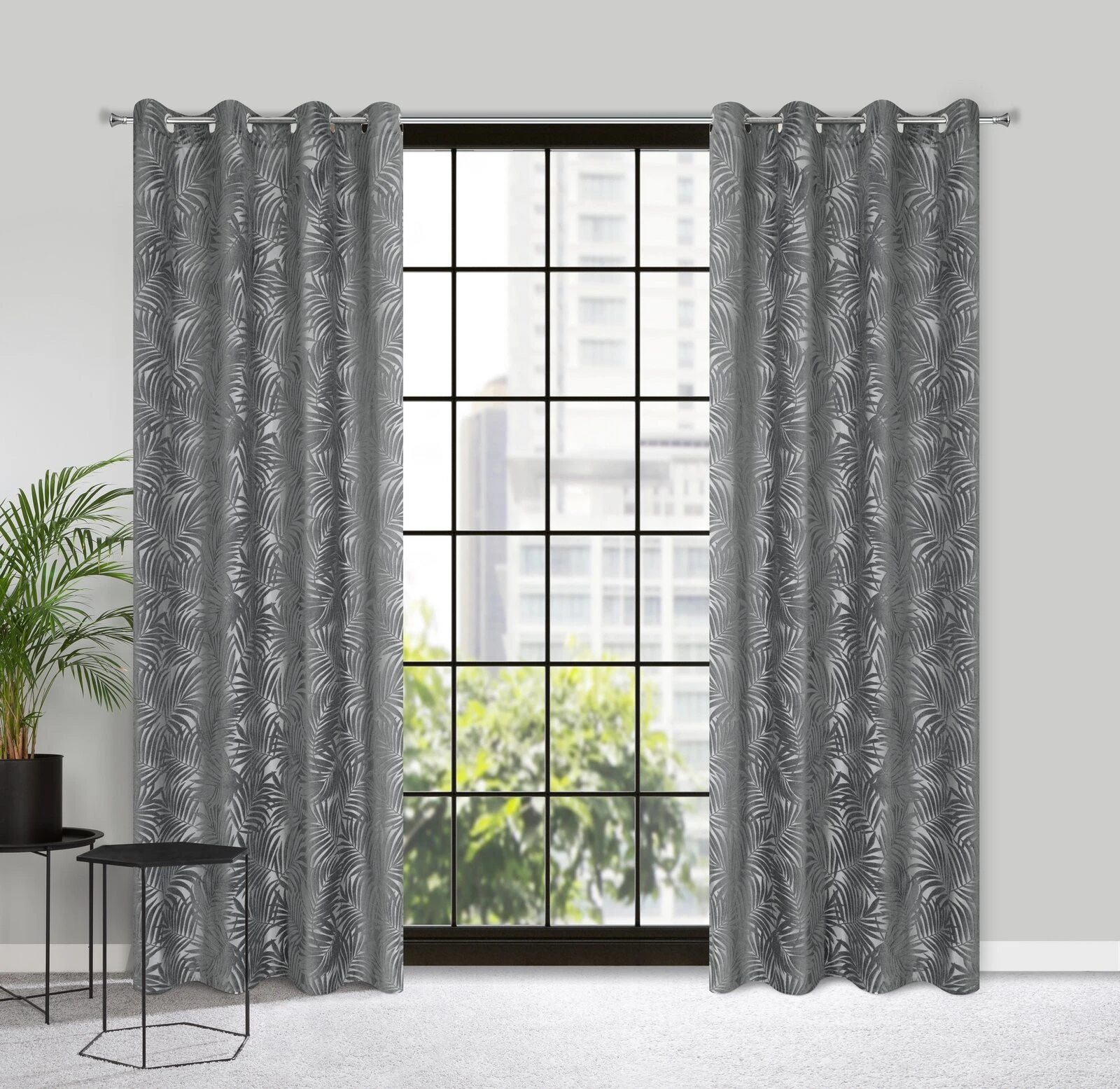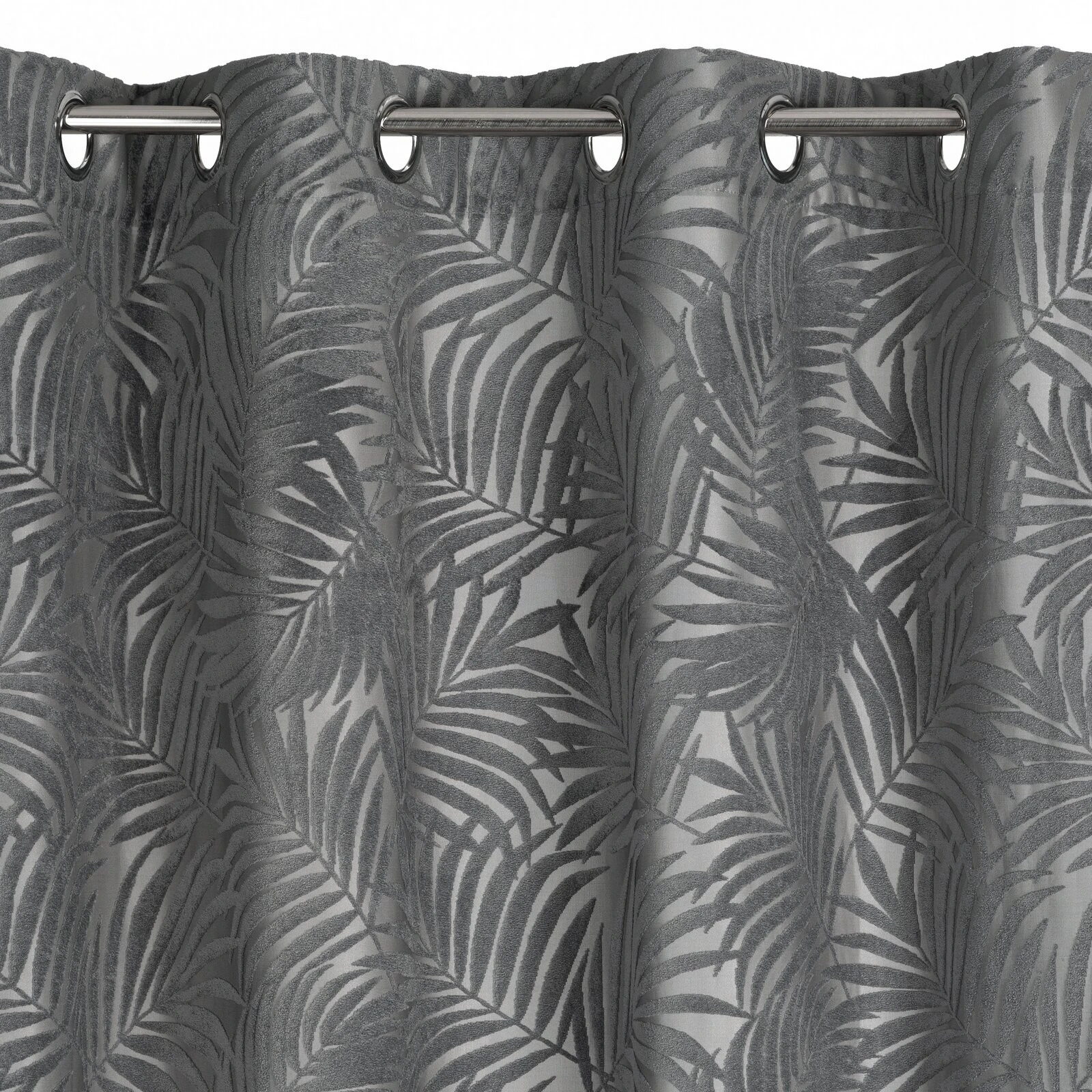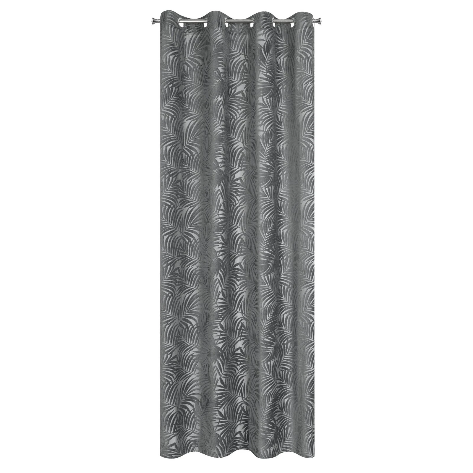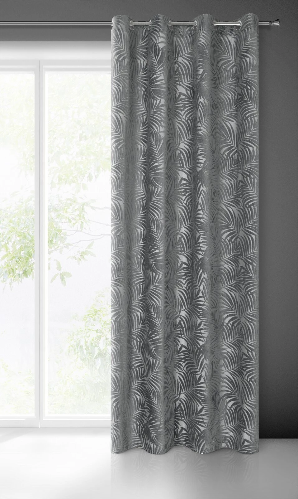 - Zasłona jednokolorowa z motywem roślinnym szerokość: 140 cm, długość: 250 cm, kolor: stalowy, Gramatura: 320 GSM, Skład: 100% poliester