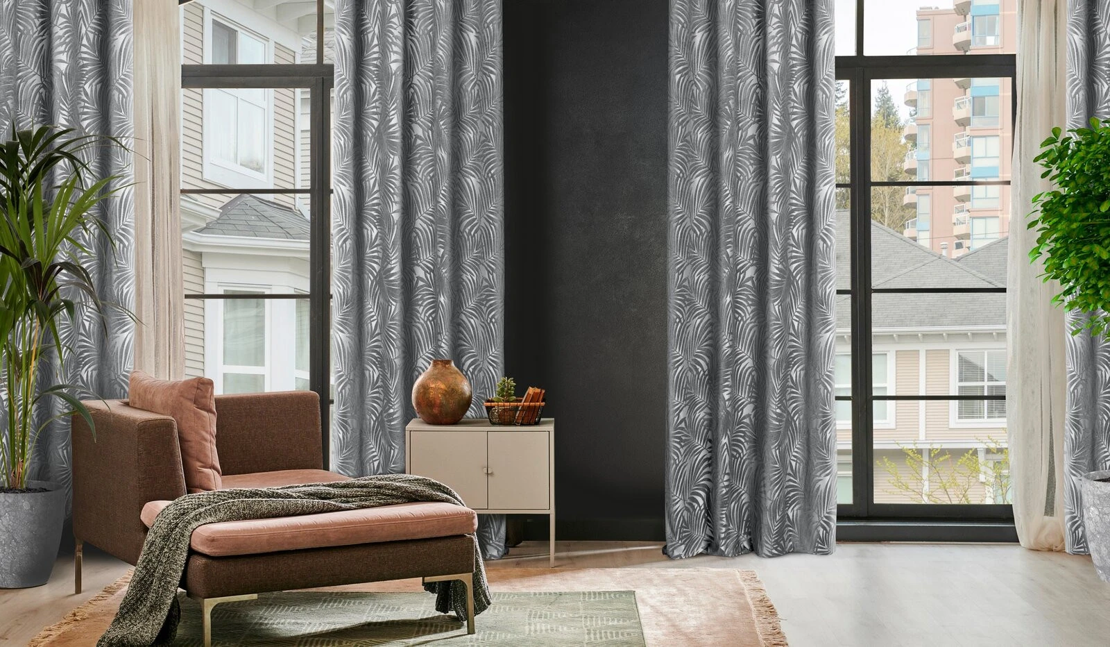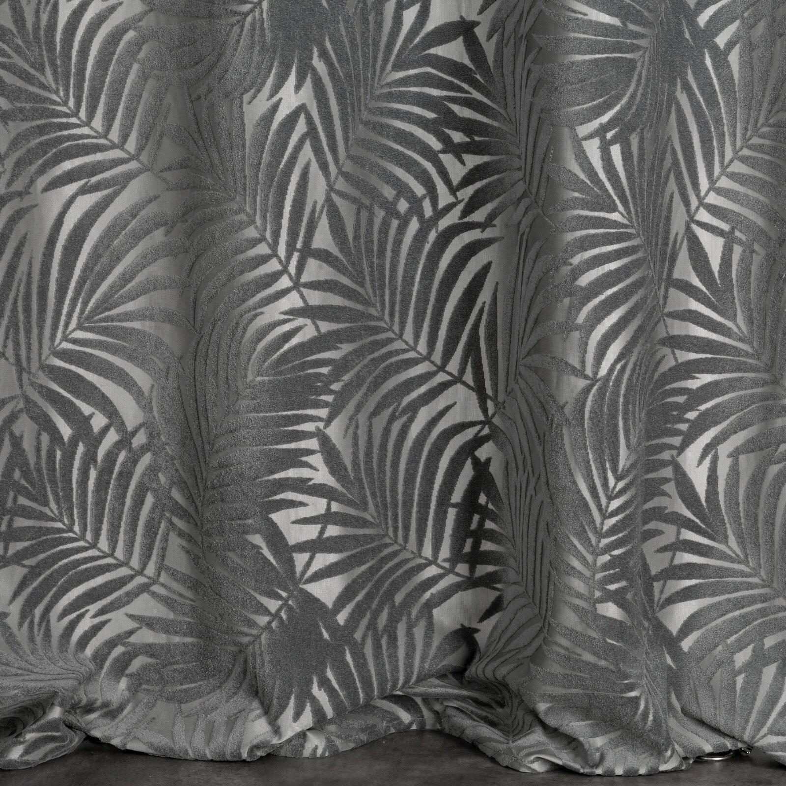 Zasłona jednokolorowa z motywem roślinnym szerokość: 140 cm, długość: 250 cm, kolor: stalowy, Gramatura: 320 GSM, Skład: 100% poliester