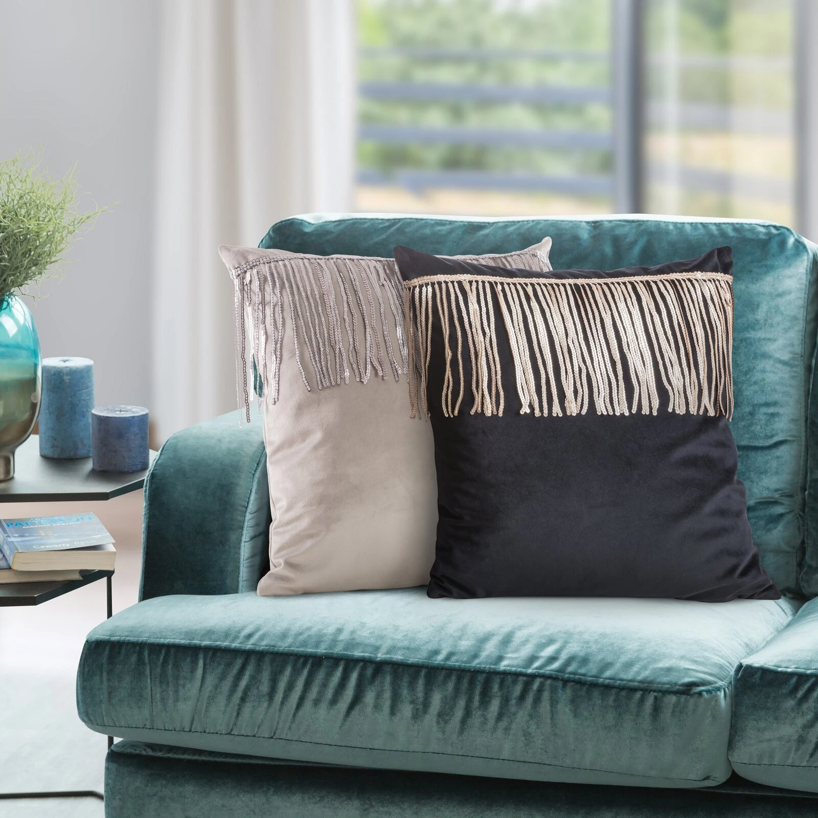 - Poszewka welwetowa jednokolorowa z ozdobną taśmą z cekinami szerokość: 45 cm, długość: 45 cm, kolor: popielaty, Gramatura: 290 GSM, Skład: 100% poliester