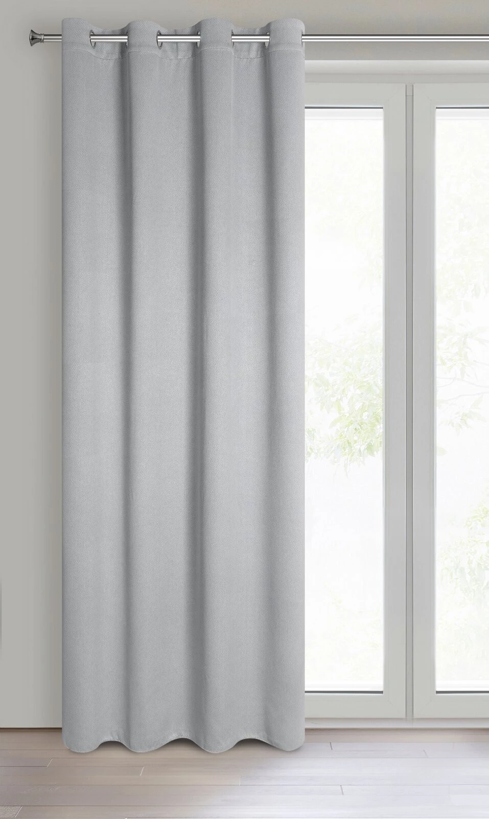 Zasłona zaciemniająca jednokolorowa strukturalna typu blackout szerokość: 140 cm, długość: 250 cm, kolor: szary, Gramatura: 340 GSM, Skład: 100% poliester