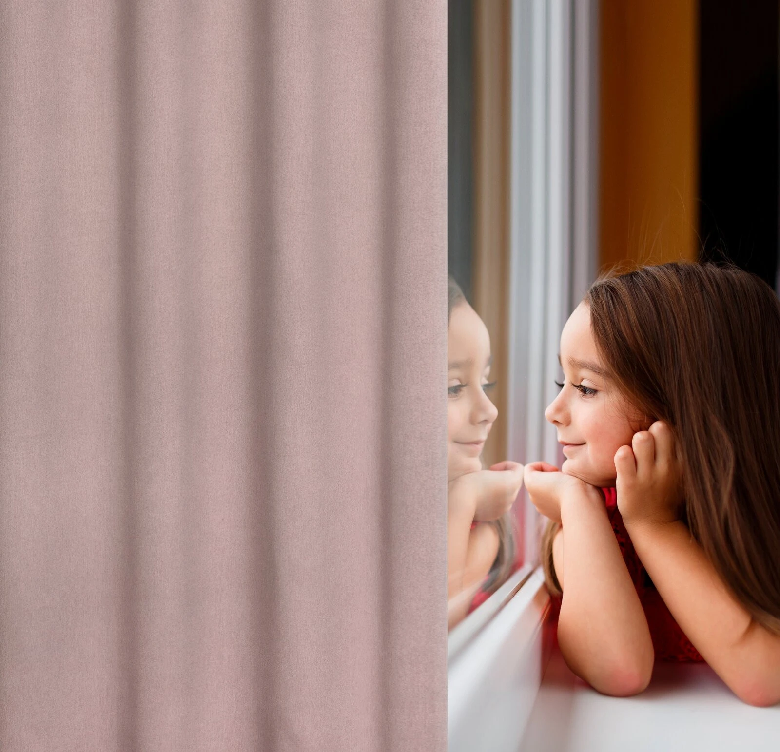 - Zasłona zaciemniająca jednokolorowa strukturalna typu blackout szerokość: 135 cm, długość: 250 cm, kolor: pudrowy róż, Gramatura: 340 GSM, Skład: 100% poliester