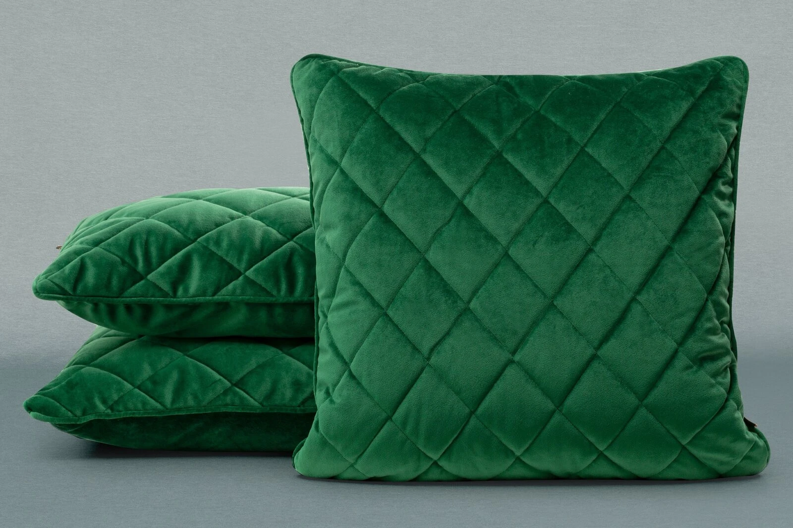 Welwetowa poszewka z wypełnieniem przeszywana szerokość: 50 cm, długość: 50 cm, kolor: ciemnozielony, Gramatura: 250 GSM, Skład: 100% poliester