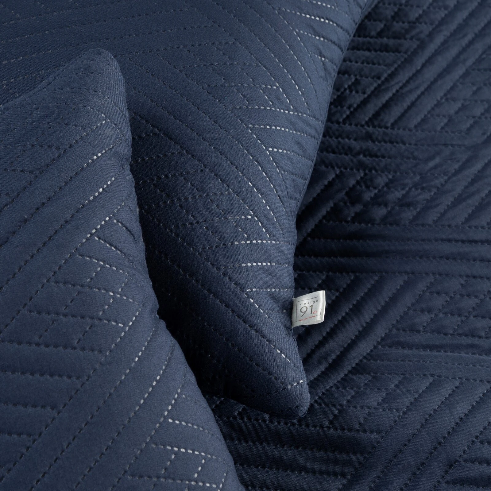 Komplet narzuty z dwoma poszewkami,wykonany techniką hot press szerokość: 200 cm, długość: 220 cm, kolor: granatowy, Gramatura: 70 GSM, Skład: 100% poliester