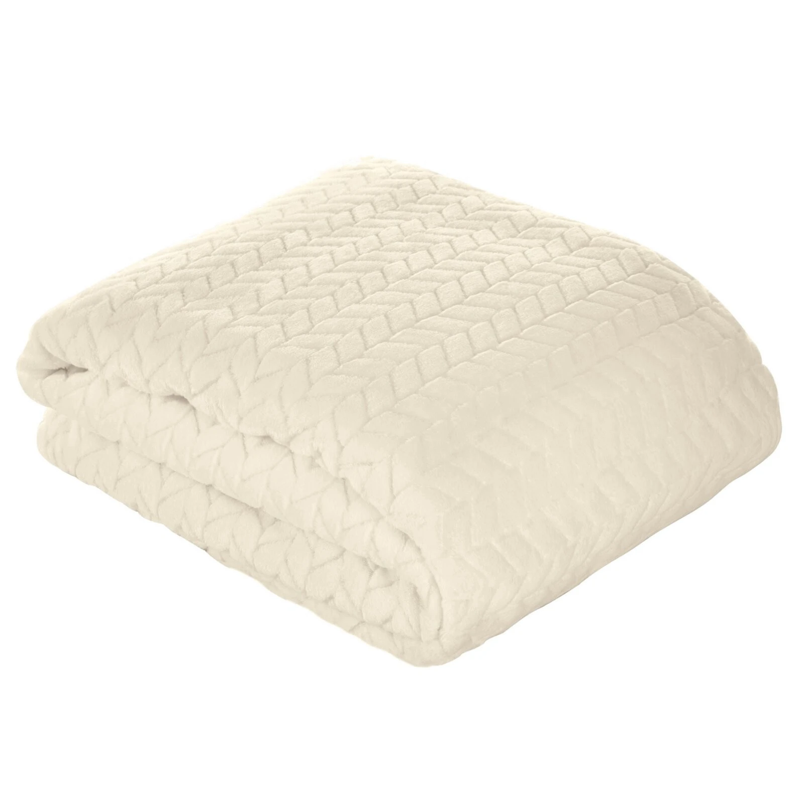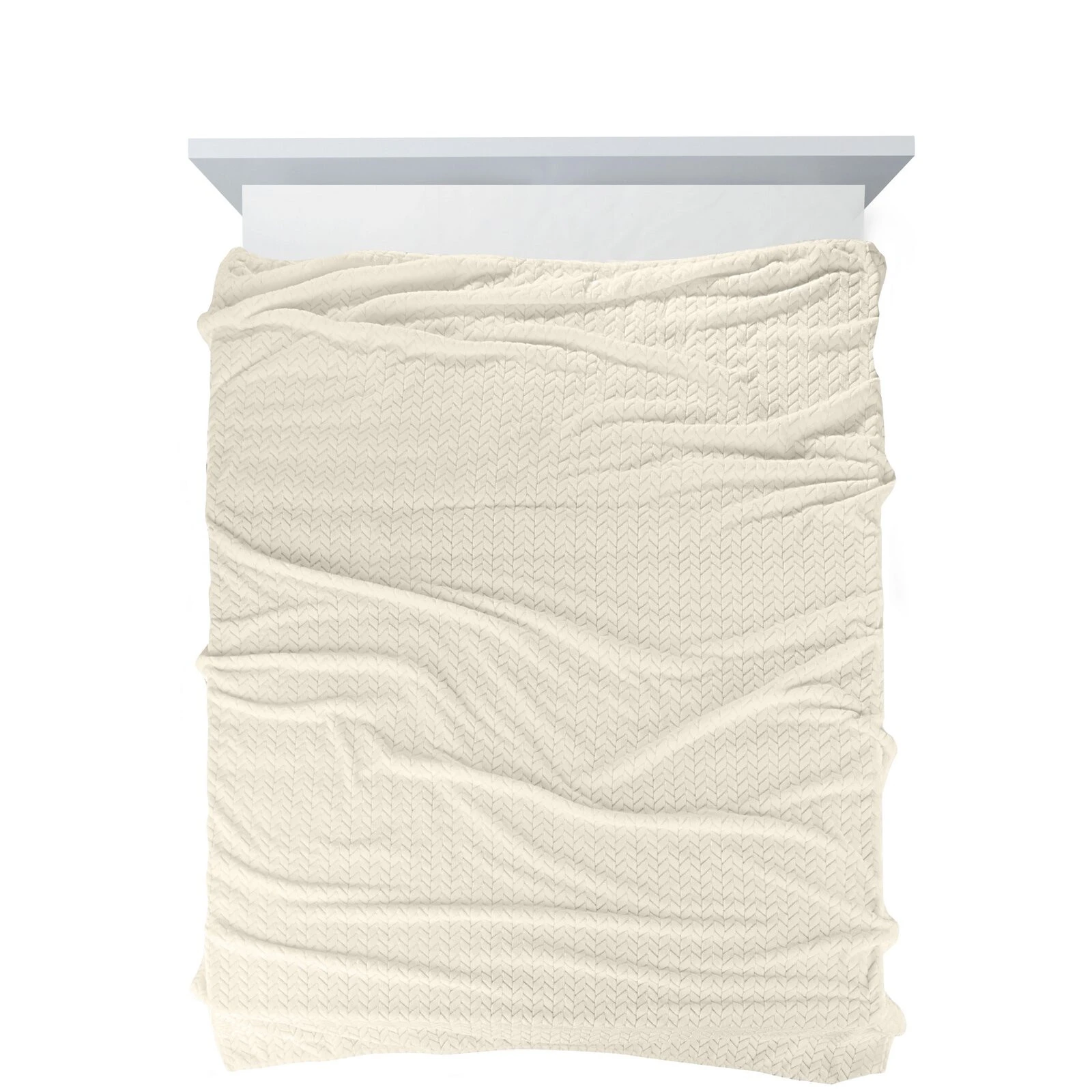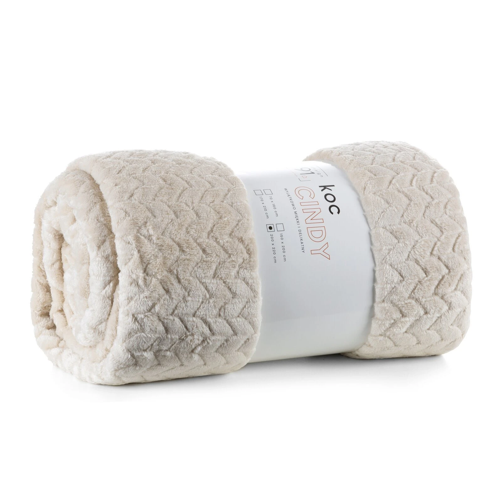 Klasyczny koc z przyjemnego w dotyku włókna w technologii mikroflano. Jednobarwna, puszysta faktura ozdobiona jest minimalistycznym tłoczeniem w formie jodełki. szerokość: 200 cm, długość: 220 cm, kolor: beżowy, Gramatura: 250GSM GSM, Skład: 100% poliester