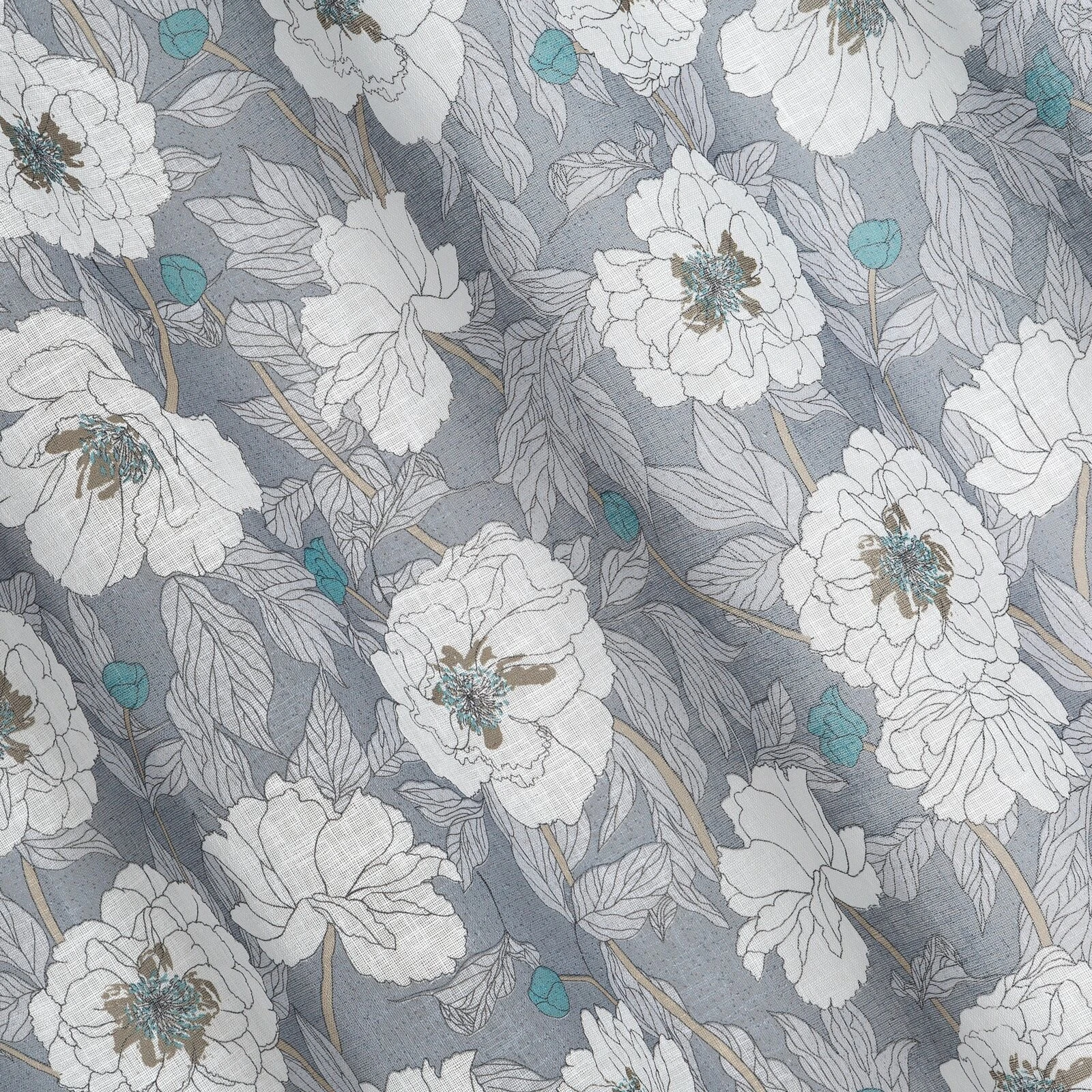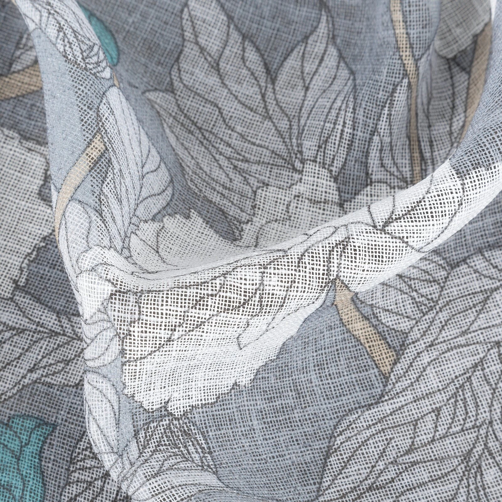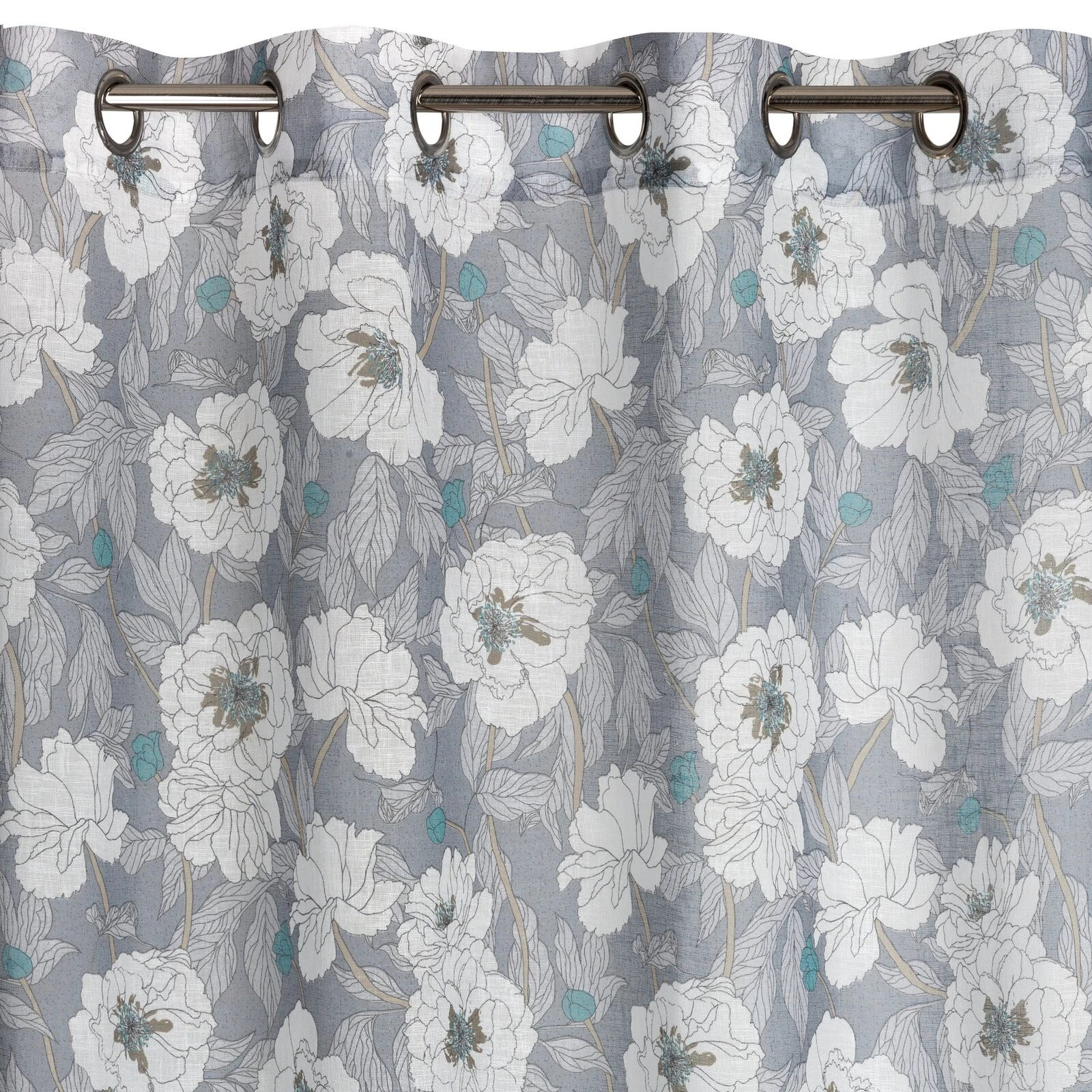 Klasyczna zasłona z tkaniny o strukturze płótna zdobiona pastelowym nadrukiem kwiatów ogrodowych. Średni stopień zaciemnienia. Tkanina łatwa w prasowaniu. szerokość: 140 cm, długość: 250 cm, kolor: popielaty, Gramatura: 130 GSM, Skład: 100% poliester