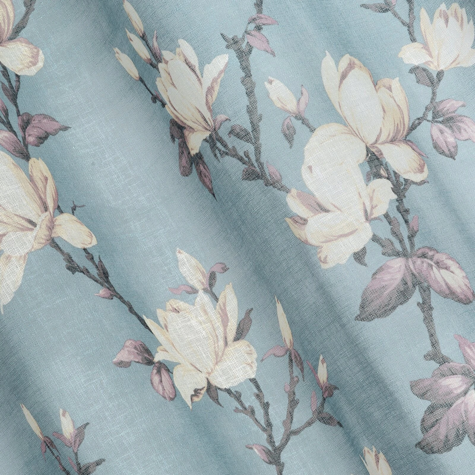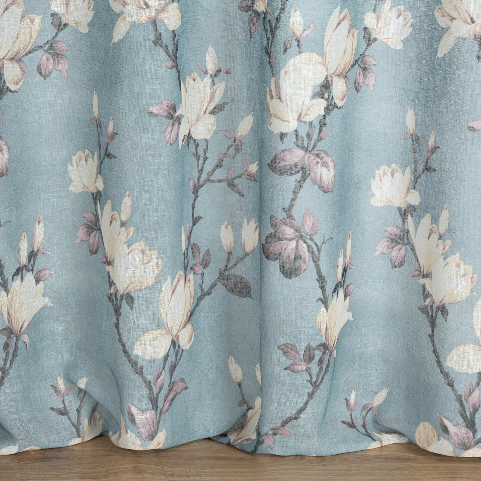 Klasyczna zasłona z tkaniny o strukturze płótna zdobiona pastelowym nadrukiem kwiatów ogrodowych. Średni stopień zaciemnienia. Tkanina łatwa w prasowaniu. szerokość: 140 cm, długość: 250 cm, kolor: szary, Gramatura: 130 GSM, Skład: 100% poliester