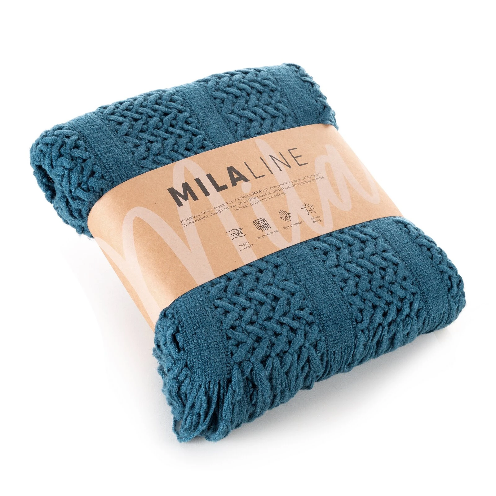 - Pleciony koc akrylowy szerokość: 130 cm, długość: 170 cm, kolor: granatowy, Gramatura: 215 GSM GSM, Skład: 100% akryl
