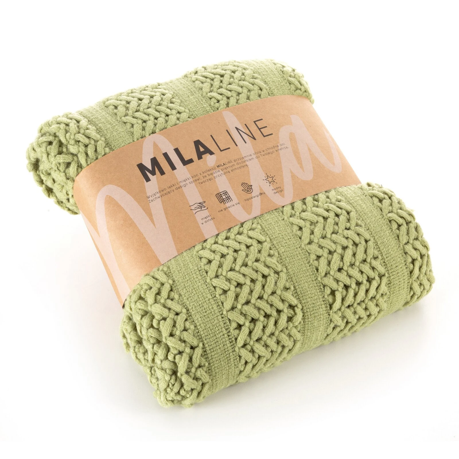 Pleciony koc akrylowy szerokość: 130 cm, długość: 170 cm, kolor: jasnozielony, Gramatura: 215 GSM GSM, Skład: 100% akryl