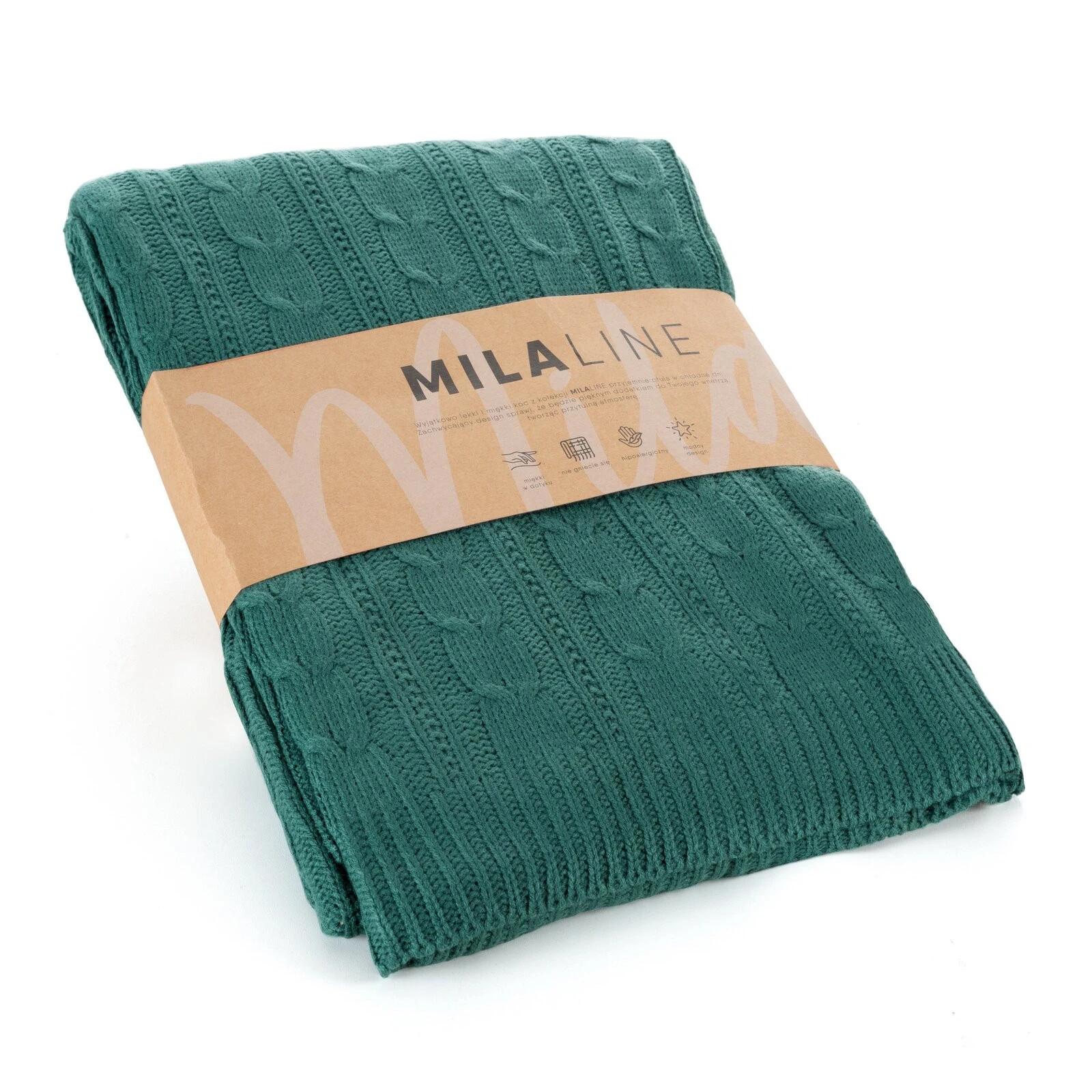 - Pleciony koc akrylowy szerokość: 130 cm, długość: 170 cm, kolor: ciemnozielony, Gramatura: 300 GSM, Skład: 100% akryl