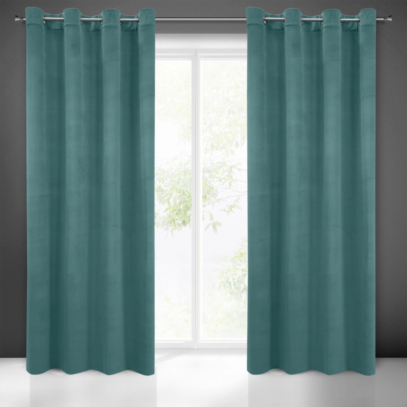 - Zasłona welwetowa strukturalna szerokość: 140 cm, długość: 250 cm, kolor: turkusowy, Gramatura: 200 GSM, Skład: 100% poliester