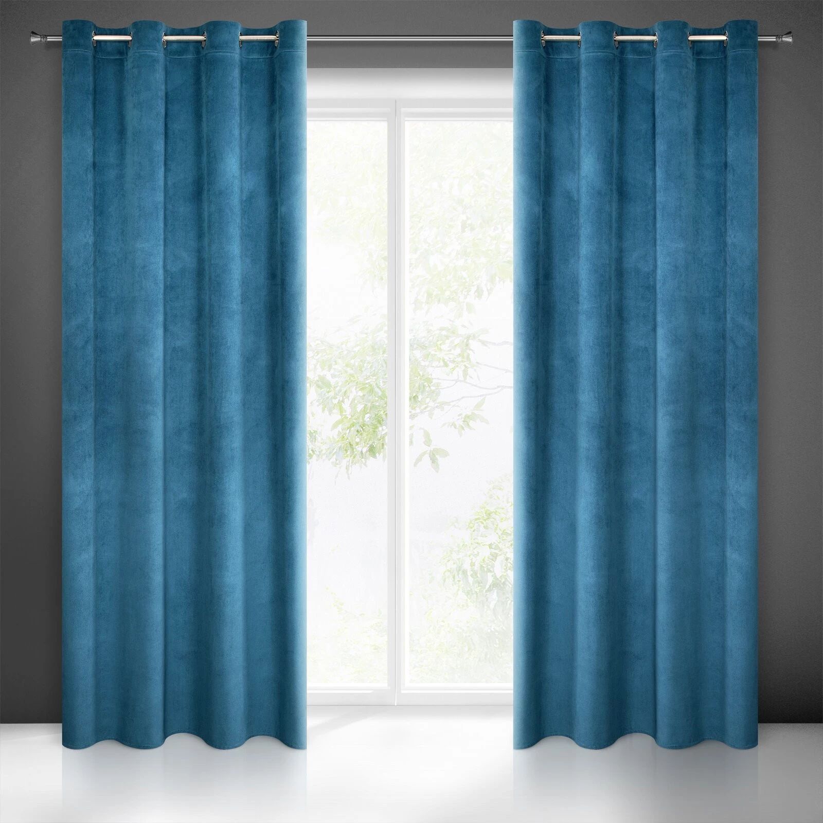 - Zasłona welwetowa strukturalna szerokość: 140 cm, długość: 250 cm, kolor: granatowy, Gramatura: 200 GSM, Skład: 100% poliester