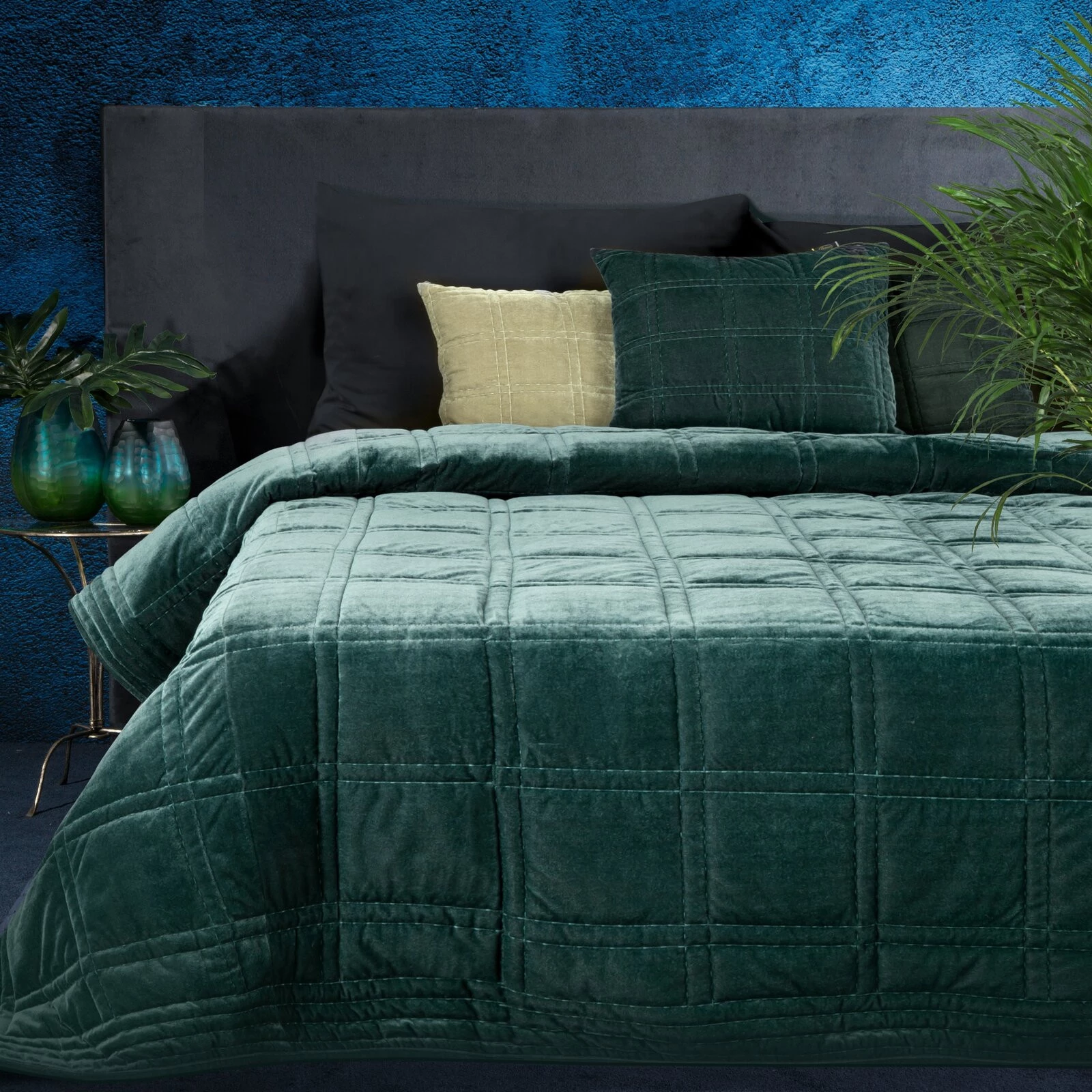 Elegancka, mięsista narzuta z wysokiej jakości welwetu o charakterystycznym połysku. Powierchnia pikowana tradycyjną metodą. Brzegi wykończone lśniącą lamówką. szerokość: 45 cm, długość: 45 cm, kolor: ciemnomiętowy, Gramatura: 220+70+220 GSM, Skład: 100% poliester