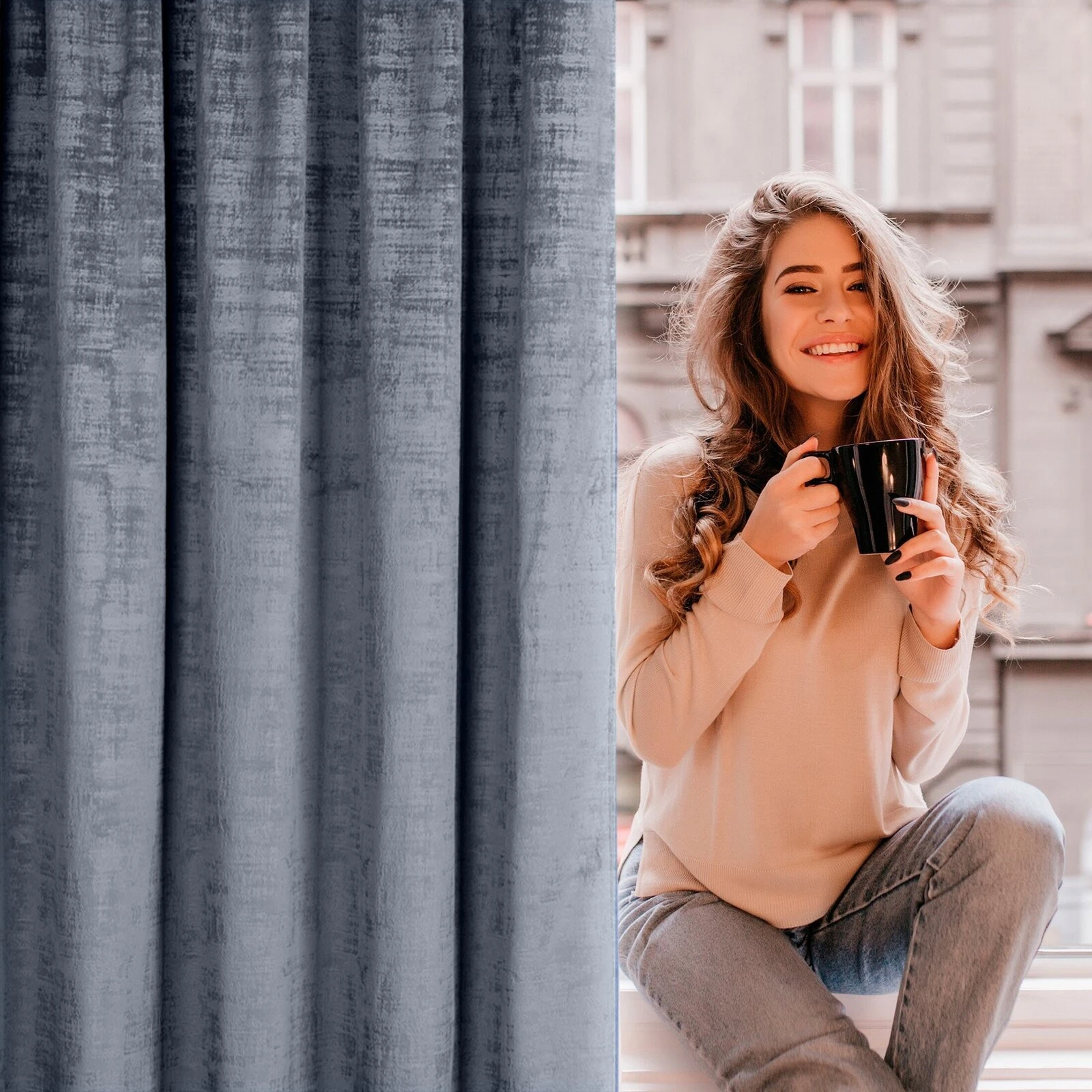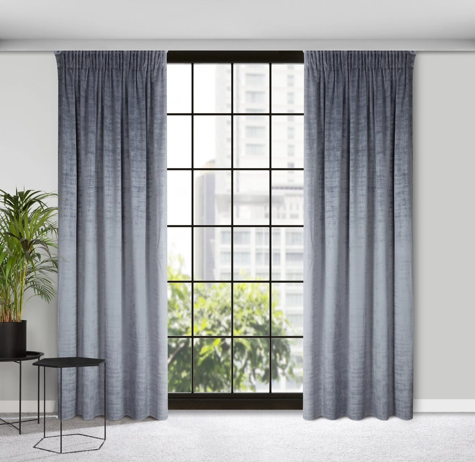 - Zasłona welwetowa z efektem cieniowania szerokość: 140 cm, długość: 270 cm, kolor: stalowy, Gramatura: 200 GSM, Skład: 100% poliester