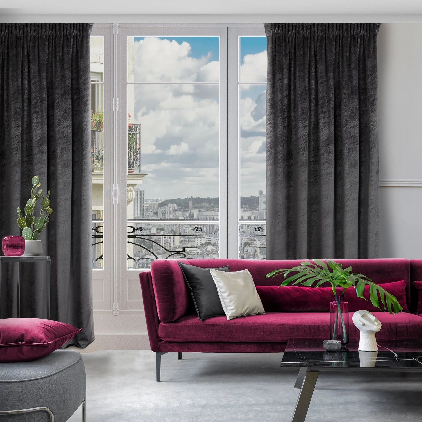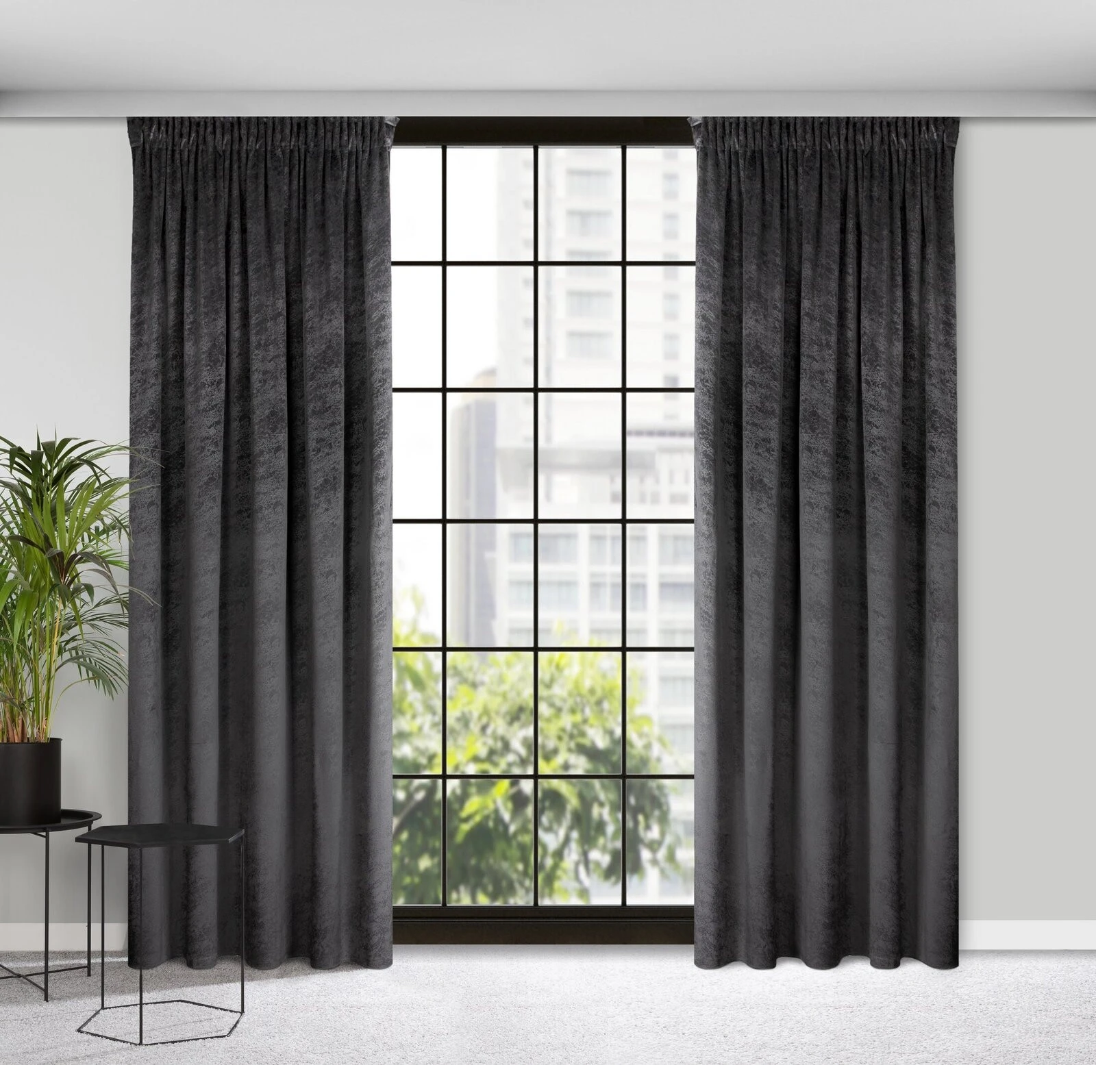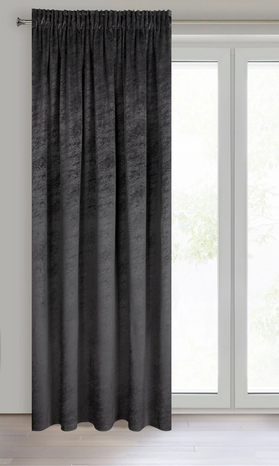 - Zasłona welwetowa z nadrukiem imitującym marmur szerokość: 140 cm, długość: 270 cm, kolor: czarny, Gramatura: 200 GSM, Skład: 100% poliester