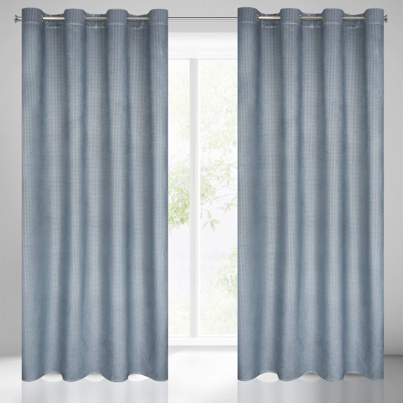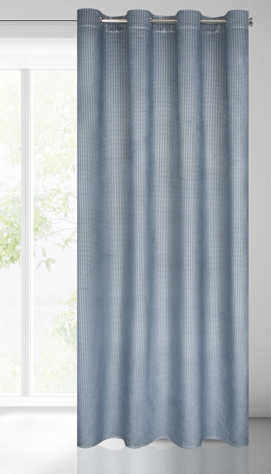 - Zasłona gotowa, z nadrukiem w pepitkę szerokość: 140 cm, długość: 250 cm, kolor: granatowy, Gramatura: 210 GSM, Skład: 100% poliester