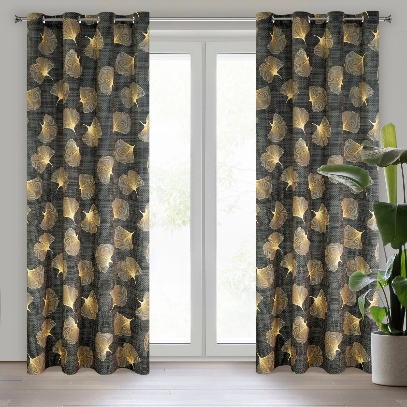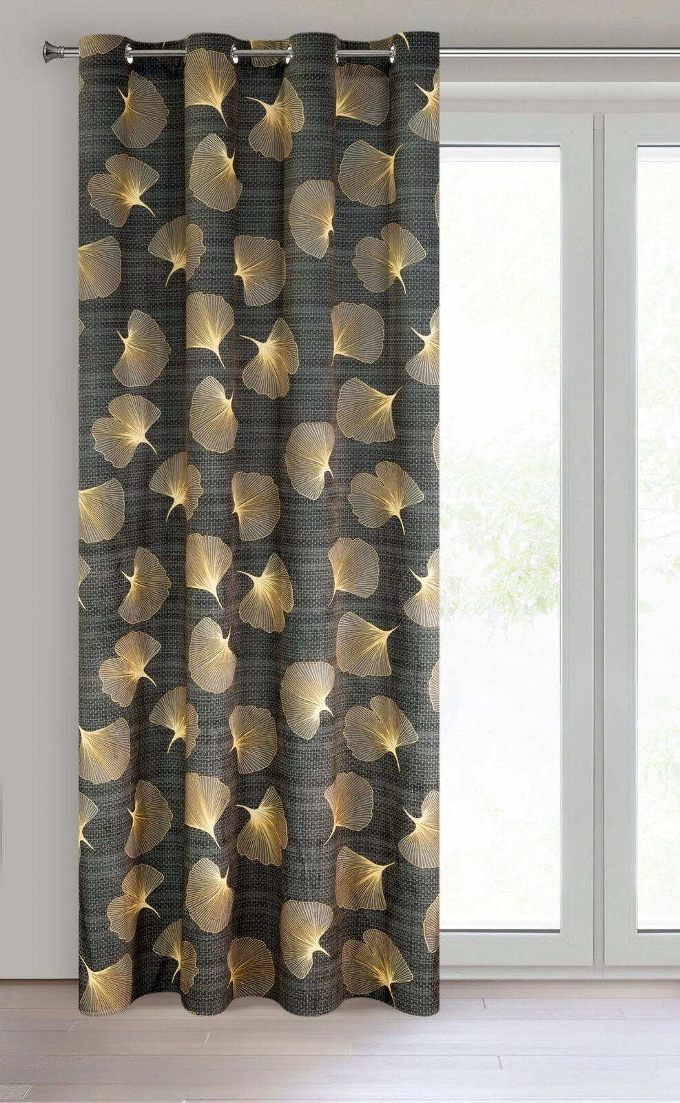 - Zasłona gotowa welwetowa z nadrukiem szerokość: 140 cm, długość: 250 cm, kolor: grafitowy, Gramatura: 200 GSM, Skład: 100% poliester