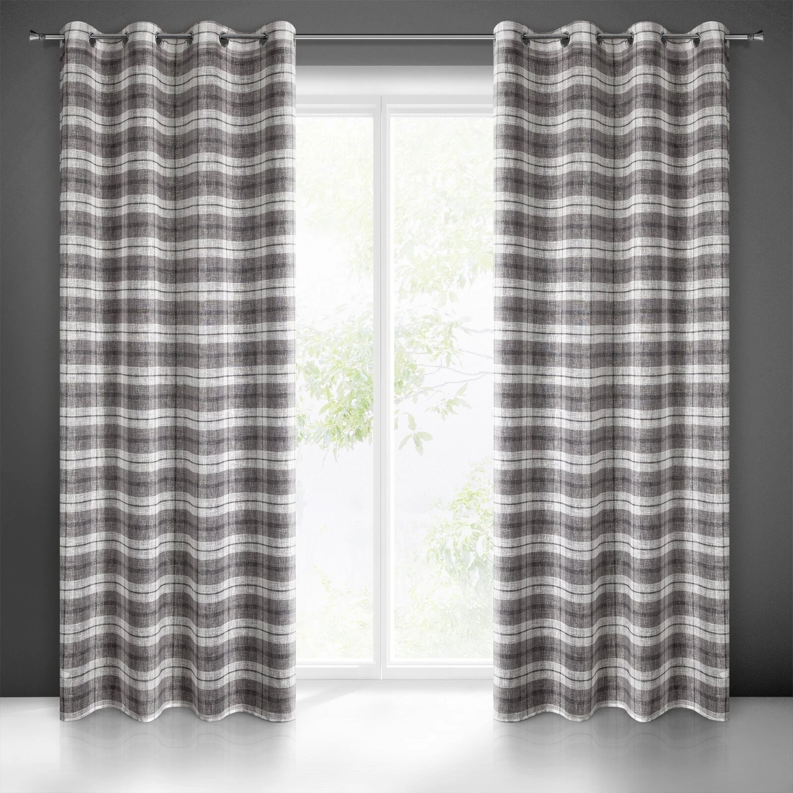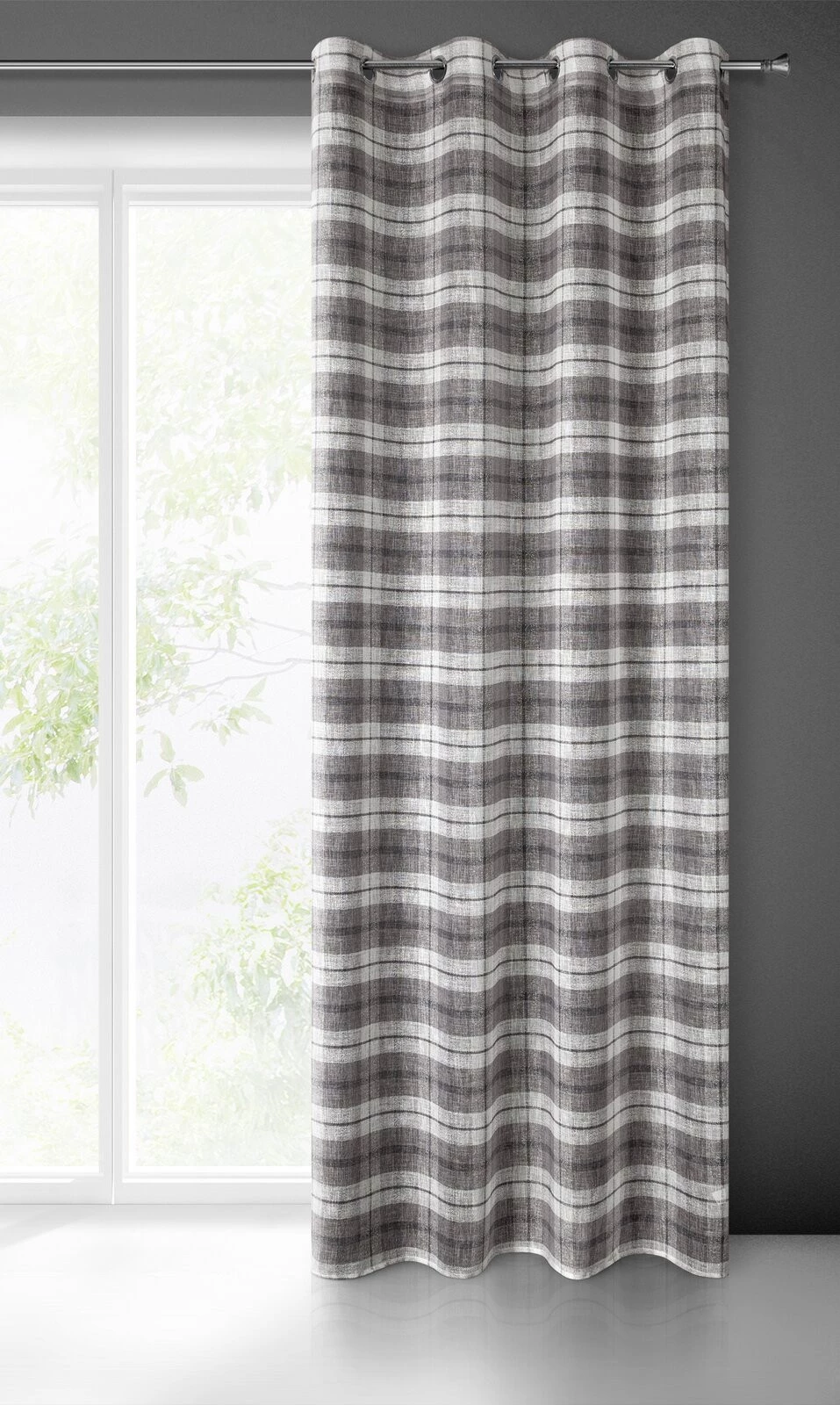 - Zasłona gotowa w kratkę szerokość: 140 cm, długość: 250 cm, kolor: szary, Skład: 100% poliester