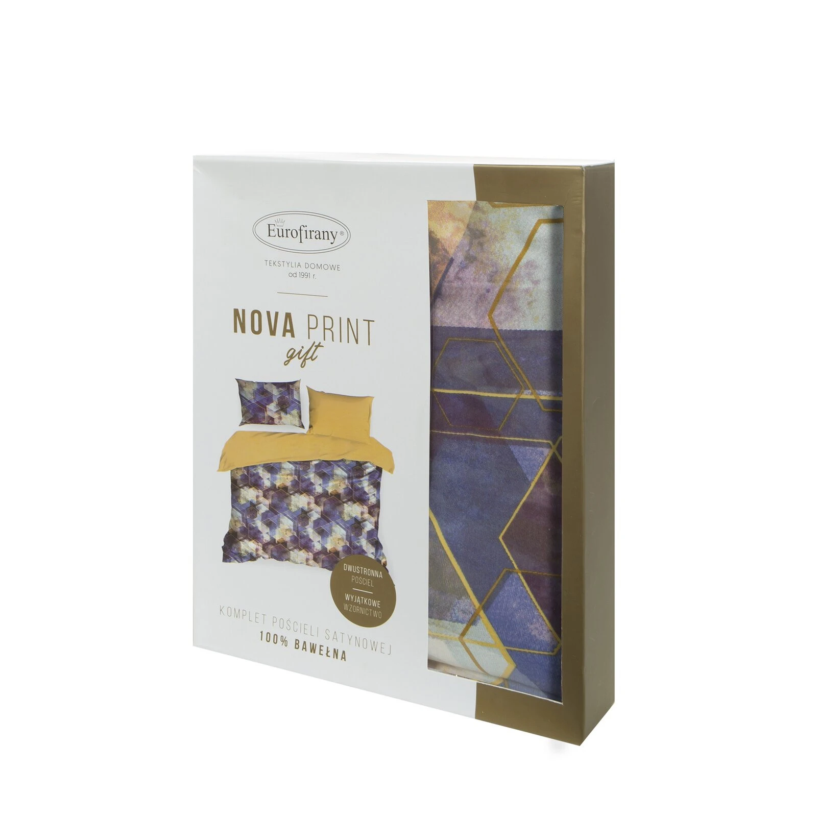 Komplet pościeli z satyny bawełnianej z nadrukiem, pakowana w pudełku szerokość: 220 cm, długość: 200 cm, kolor: fioletowy, Gramatura: 125 GSM, Skład: satyna, 100% bawełna