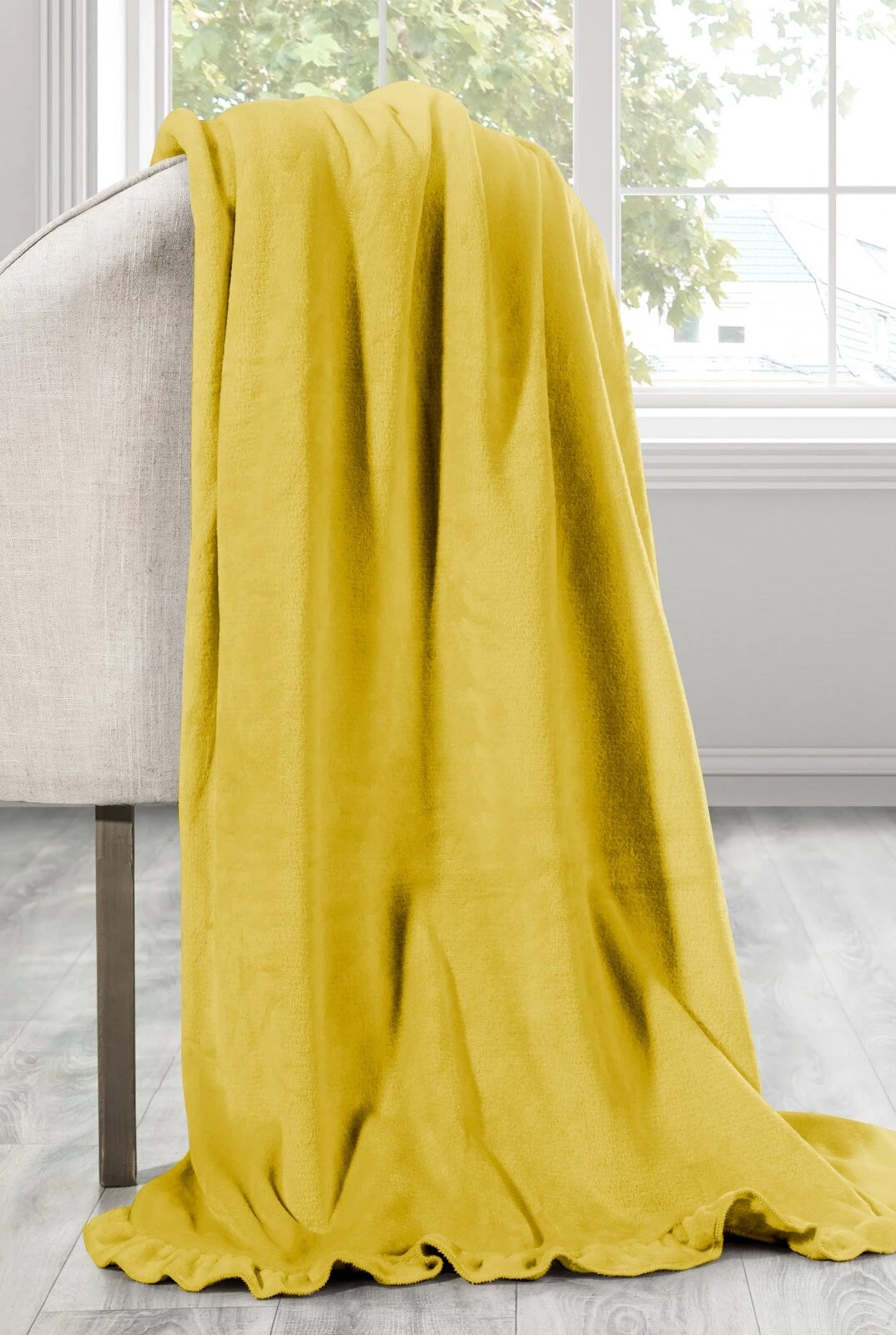 - Gładki, jednokolorowy koc z szeroką, dekoracyjną falbanką. Miękki i przyjemny w dotyku pled z mikroflano jest łatwy w praniu. Doskonały w sielankowych stylach. szerokość: 150 cm, długość: 200 cm, kolor: musztardowy, Gramatura: 250 GSM GSM, Skład: 100% pol