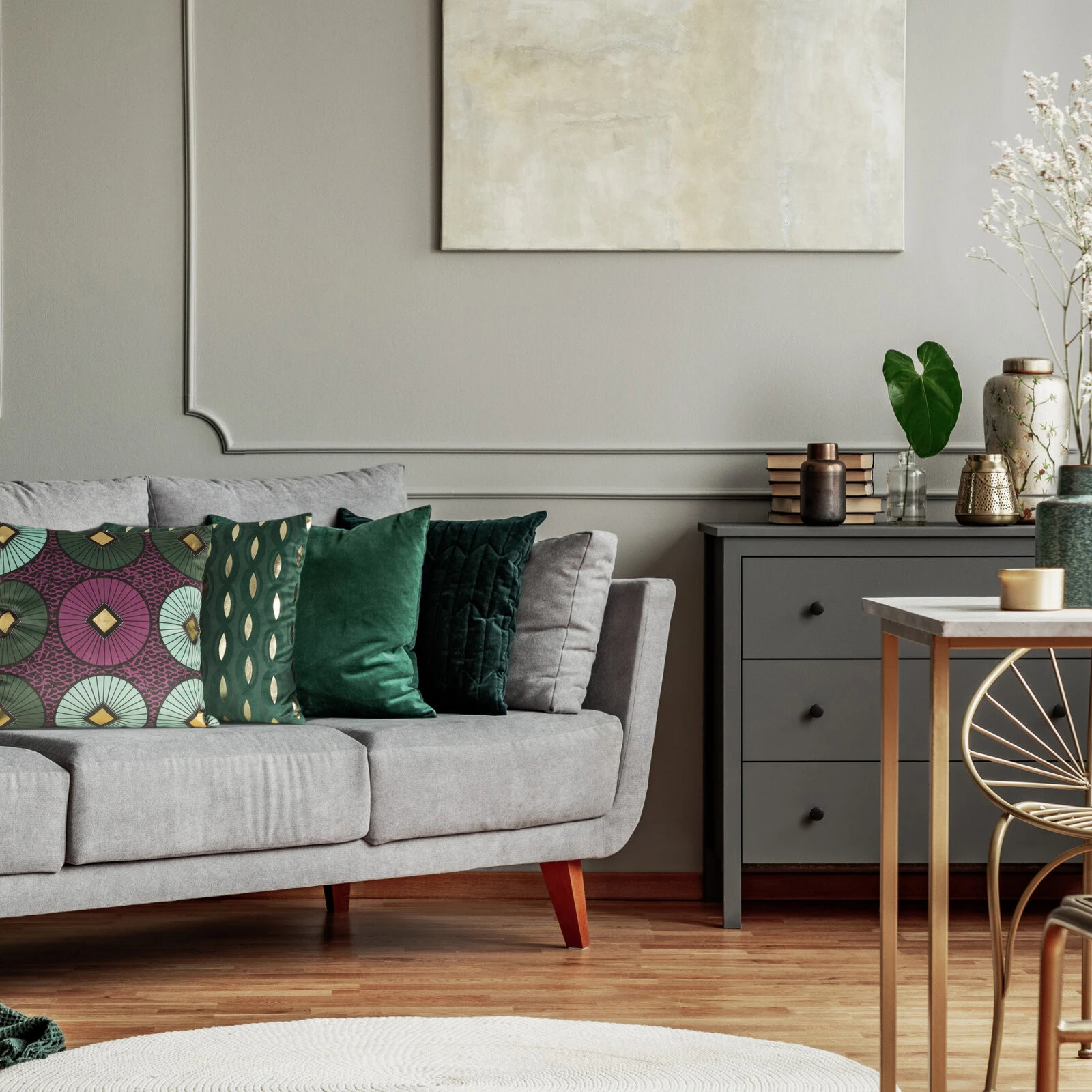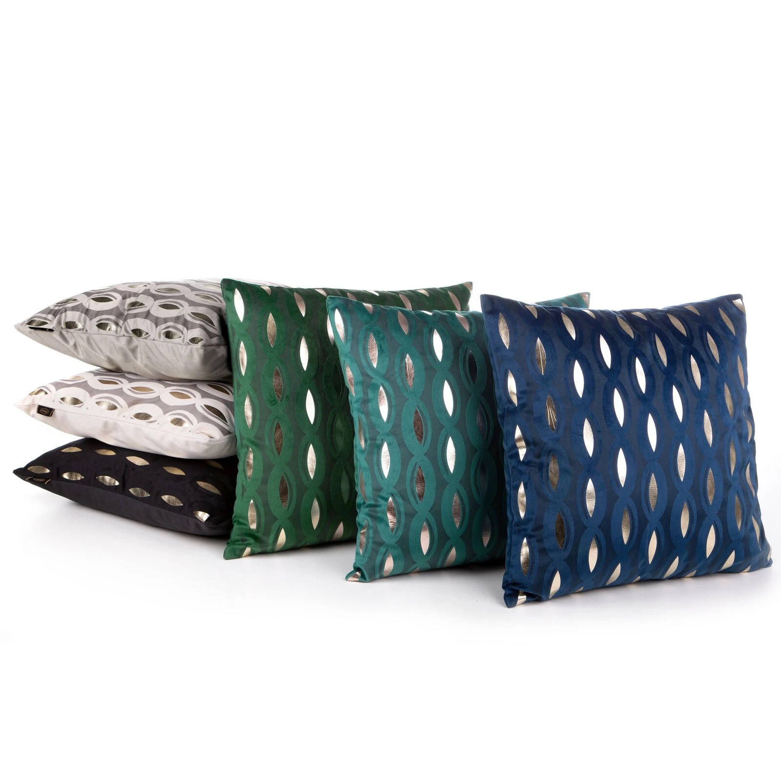 Poszewka dekoracyjna zdobiona złotym nadrukiem szerokość: 45 cm, długość: 45 cm, kolor: turkusowy, Gramatura: 250 GSM GSM, Skład: 100% poliester