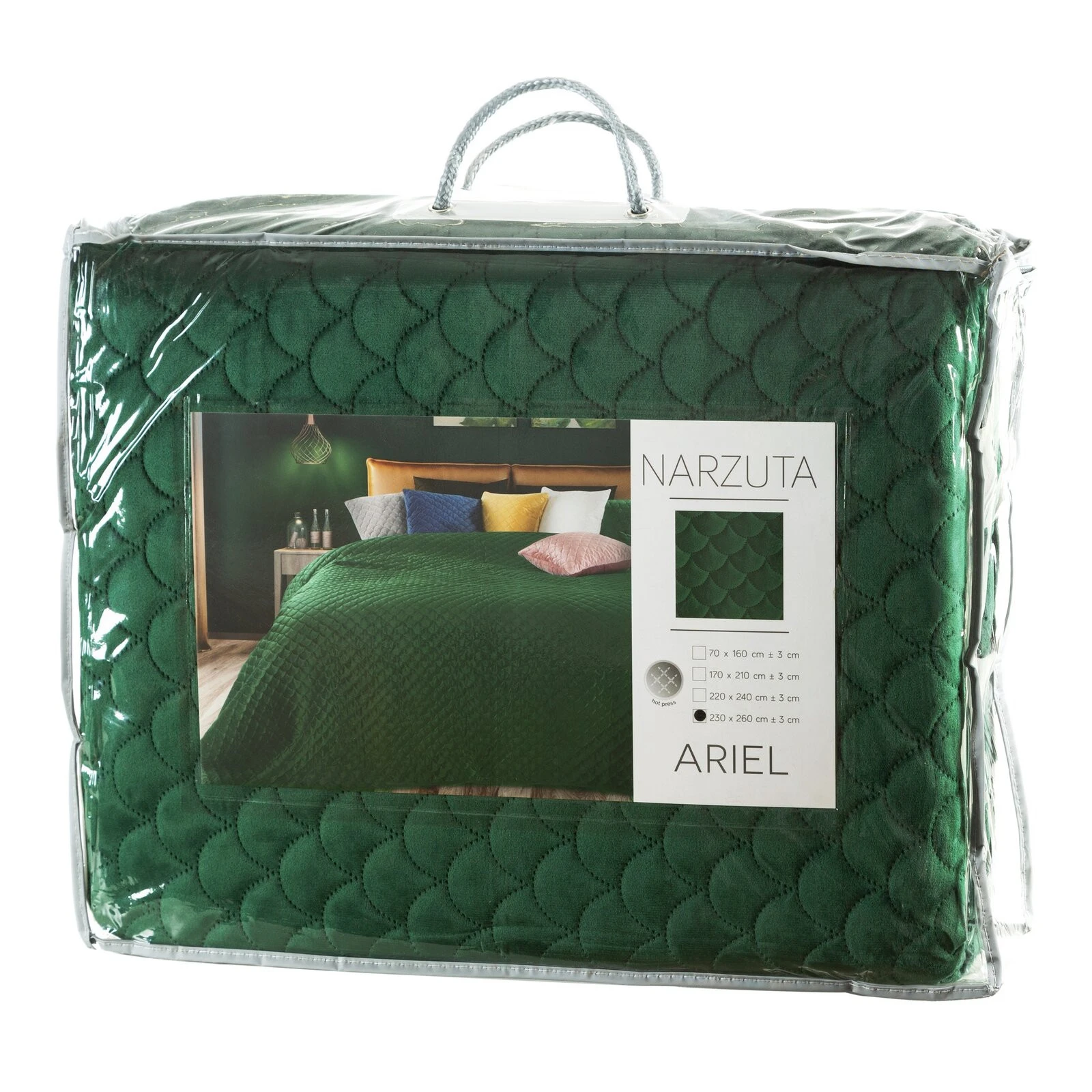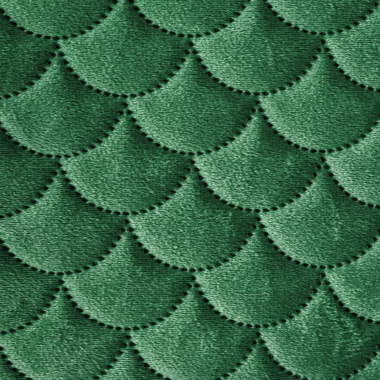 - Klasyczna i bardzo elegancka narzuta na łóżko z miękkiego welwetu pikowana w modny motyw łuski. Pikowania wykonane metodą bezszwową hotpress. szerokość: 230 cm, długość: 260 cm, kolor: ciemnozielony, Gramatura: 180+70+100 GSM, Skład: 100% poliester