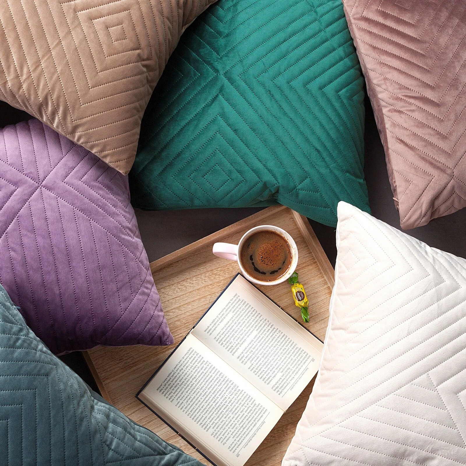 Poszewka welwetowa, wykonana techinką "hot press" szerokość: 45 cm, długość: 45 cm, kolor: ciemnomiętowy, Gramatura: 260 GSM, Skład: 100% poliester