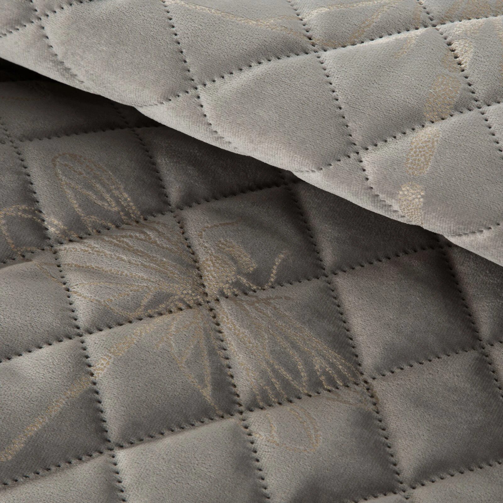 Narzuta welwetowa, wykonana techniką "hot press"z foliowym nadrukiem szerokość: 170 cm, długość: 210 cm, kolor: srebrny, Gramatura: 210+120+70 GSM, Skład: 100% poliester