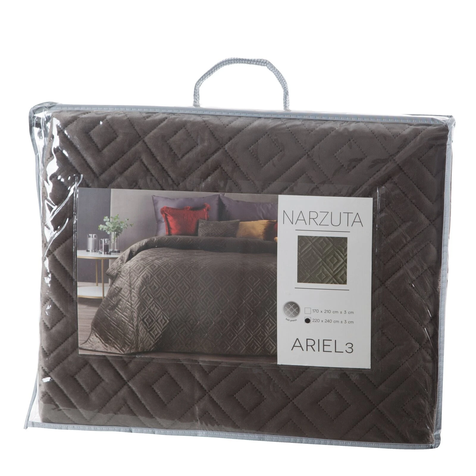 - Klasyczna i bardzo elegancka narzuta na łóżko z miękkiego welwetu pikowana w modny motyw łuski. Pikowania wykonane metodą bezszwową hotpress. szerokość: 220 cm, długość: 240 cm, kolor: ciemnobeżowy, Gramatura: 180+70+100 GSM, Skład: 100% poliester