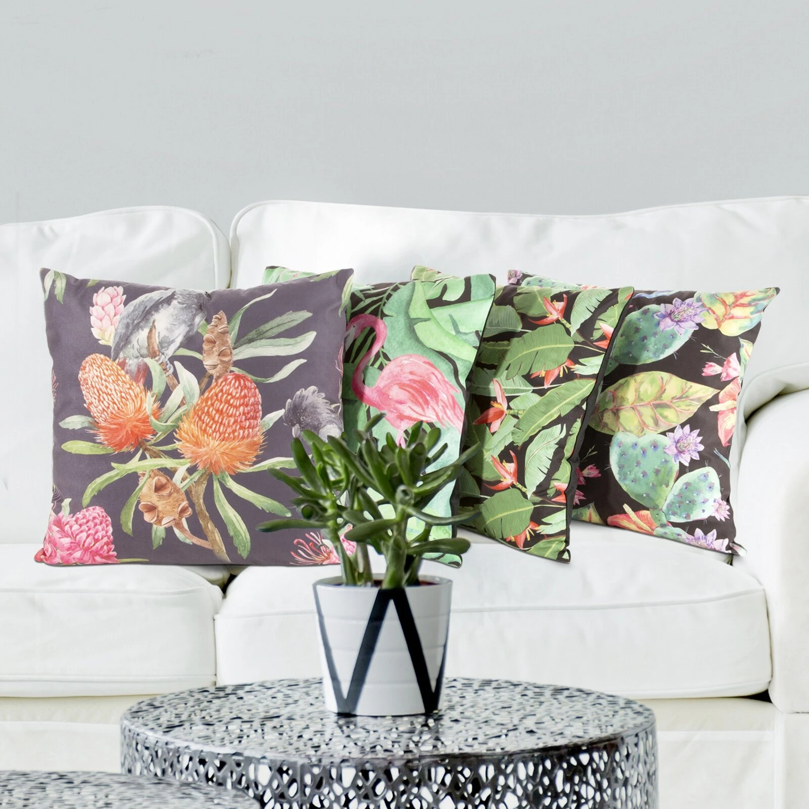- Welwetowa poszewka dekoracyjna z kwiatowym nadrukiem szerokość: 45 cm, długość: 45 cm, kolor: czarny, Gramatura: 160 GSM GSM, Skład: 100% poliester