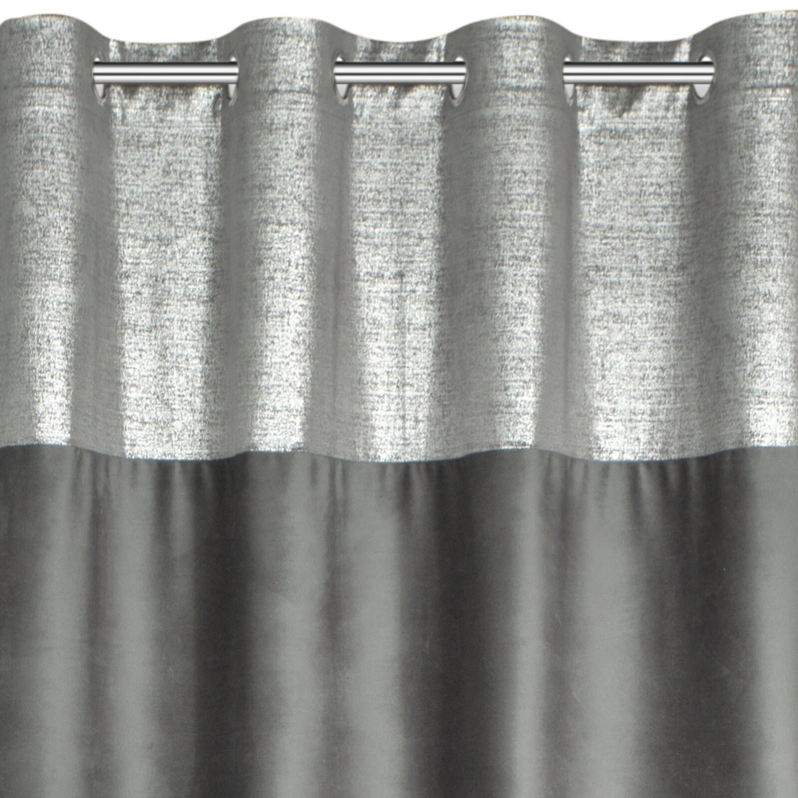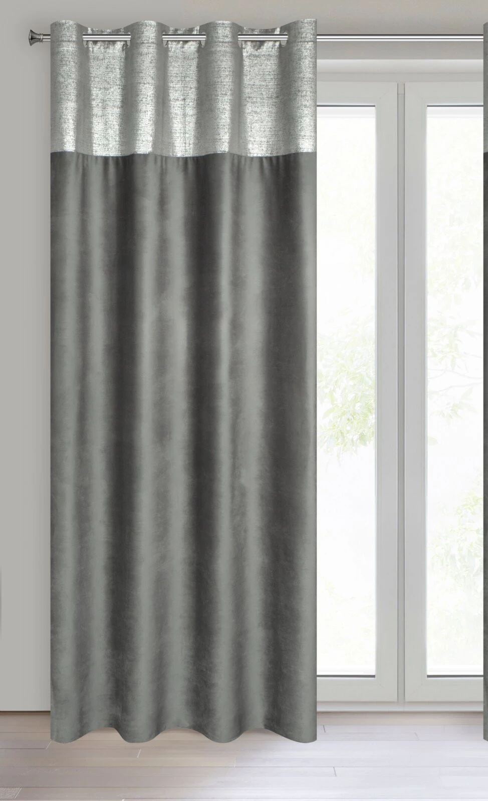 - Zasłona welwetowa ze srebrnym nadrukiem szerokość: 140 cm, długość: 250 cm, kolor: stalowy, Gramatura: 200 GSM, Skład: 100% poliester