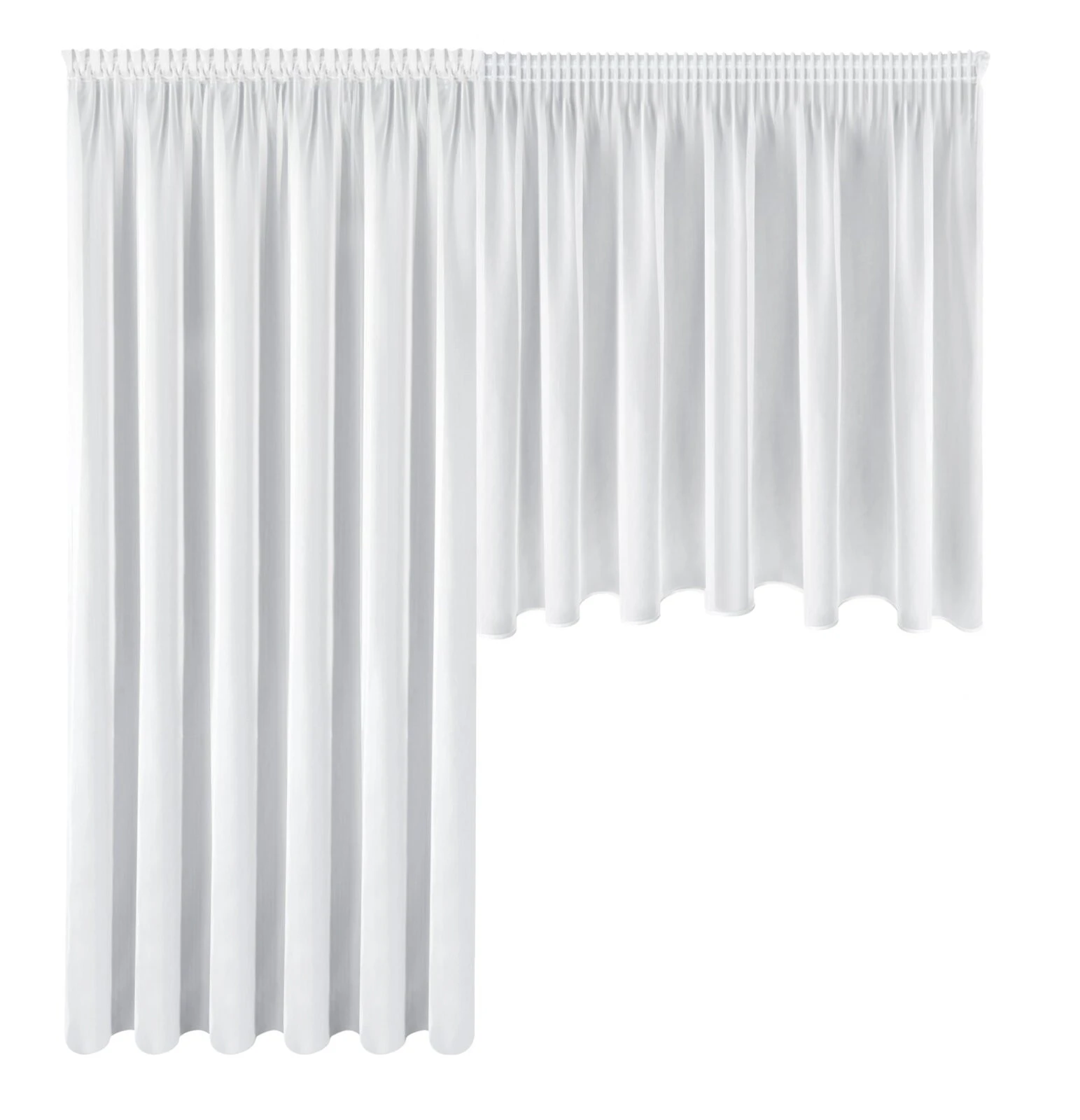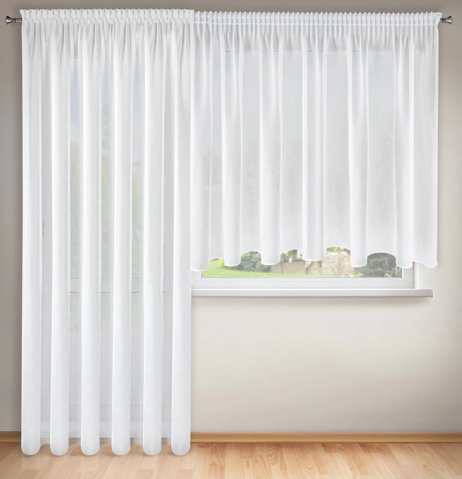 Firana gotowa z ozdobną koronką szerokość: 200 cm, długość: 245 cm, kolor: biały, Gramatura: 50 GSM, Skład: 100% poliester