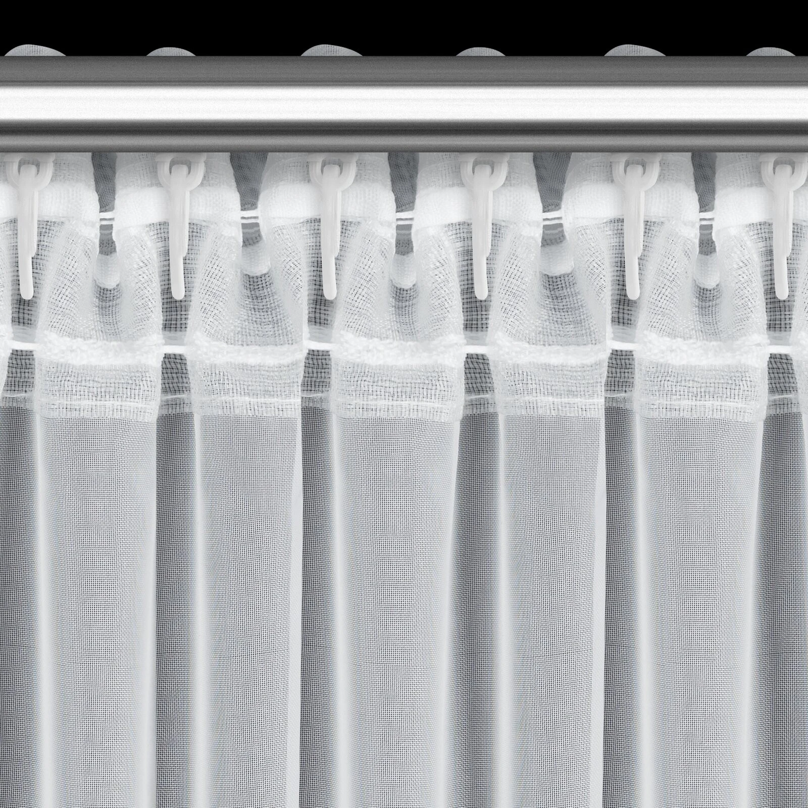 - Firana gotowa z ozdobną koronką szerokość: 200 cm, długość: 245 cm, kolor: biały, Gramatura: 50 GSM, Skład: 100% poliester