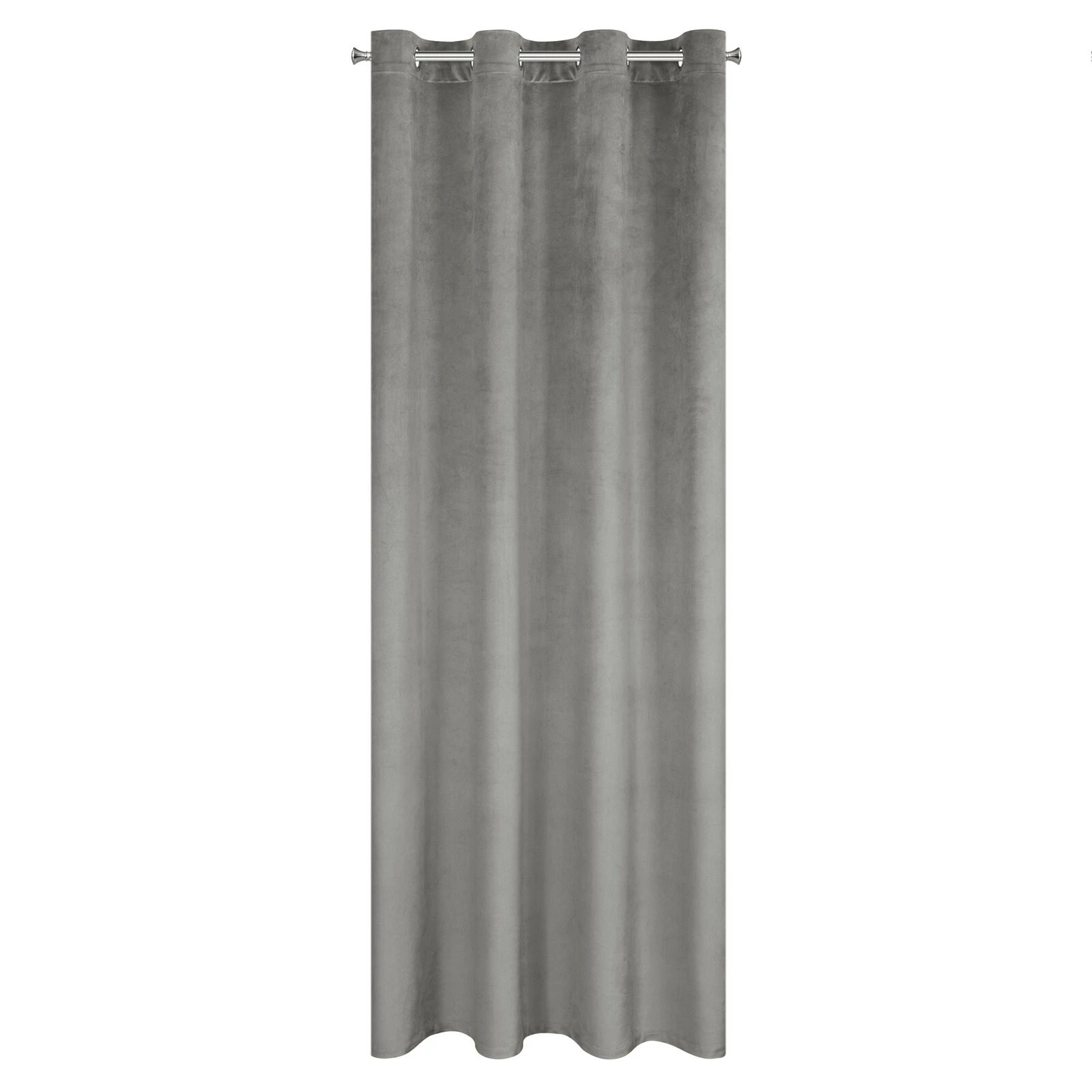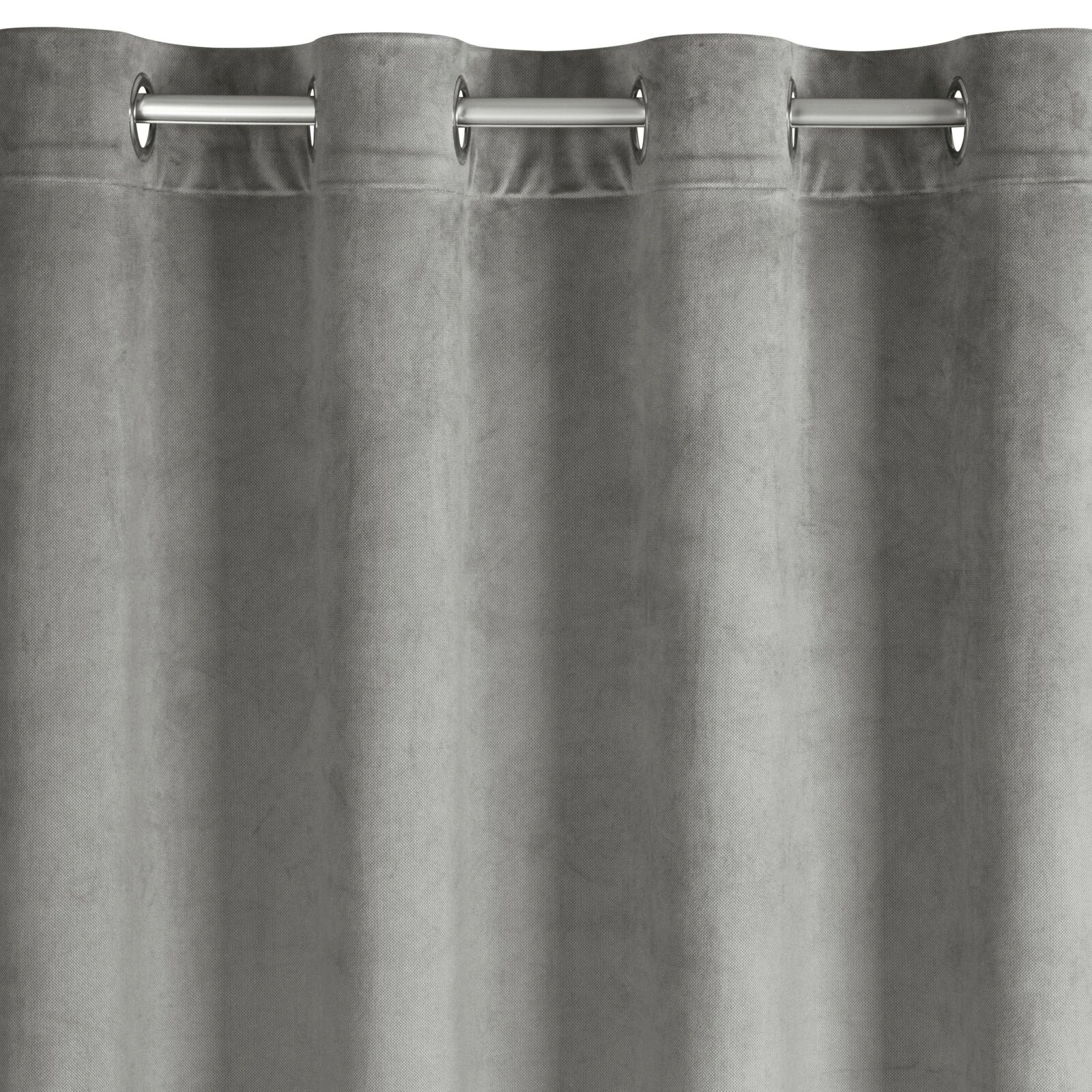 - Gotowa zasłona welwetowa z drobnym nadrukiem szerokość: 140 cm, długość: 250 cm, kolor: popielaty, Gramatura: 200 GSM, Skład: 100% poliester