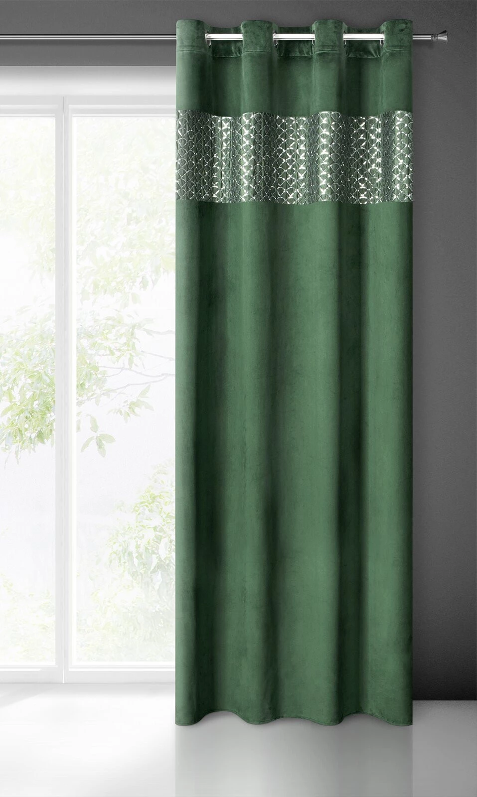 Zasłona welwetowa zdobiona haftem oraz cekinami szerokość: 140 cm, długość: 250 cm, kolor: ciemnozielony, Gramatura: 200 GSM, Skład: 100% poliester