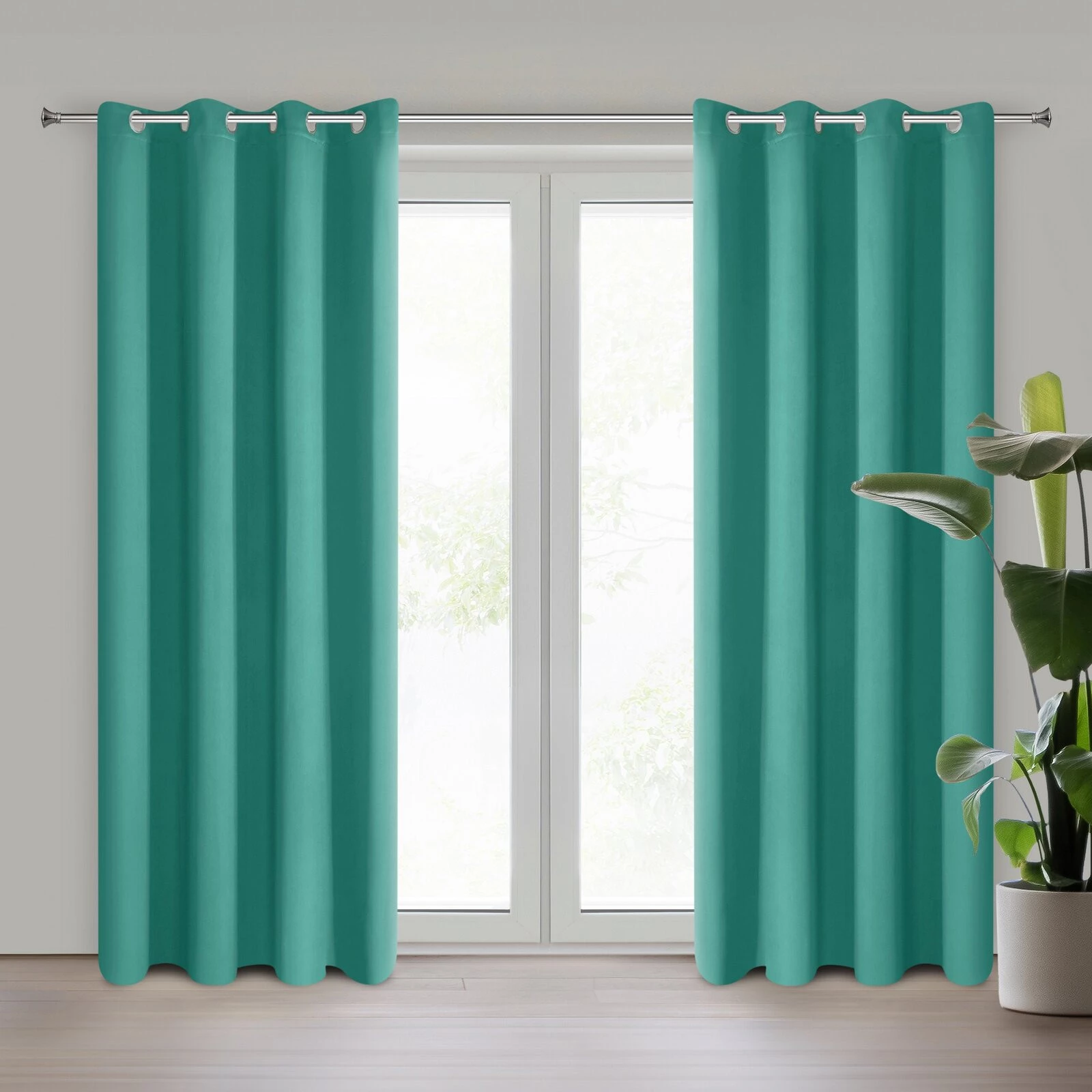 - Zasłona zaciemniająca z mięsistej tkaniny typu blackout. Doskonała izolacja cieplna i akustyczna wnetrza. Jednokolorowa zasłona o minimalistycznym designie. szerokość: 140 cm, długość: 250 cm, kolor: turkusowy, Gramatura: 210 GSM, Skład: 100% poliester