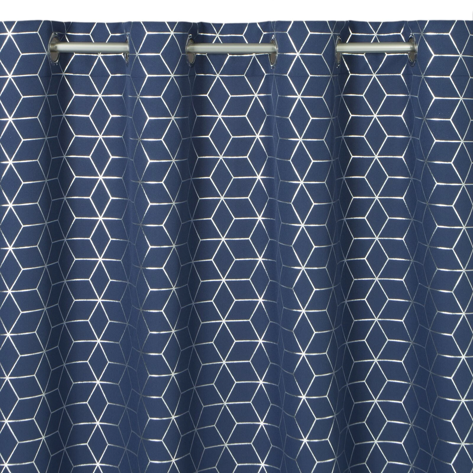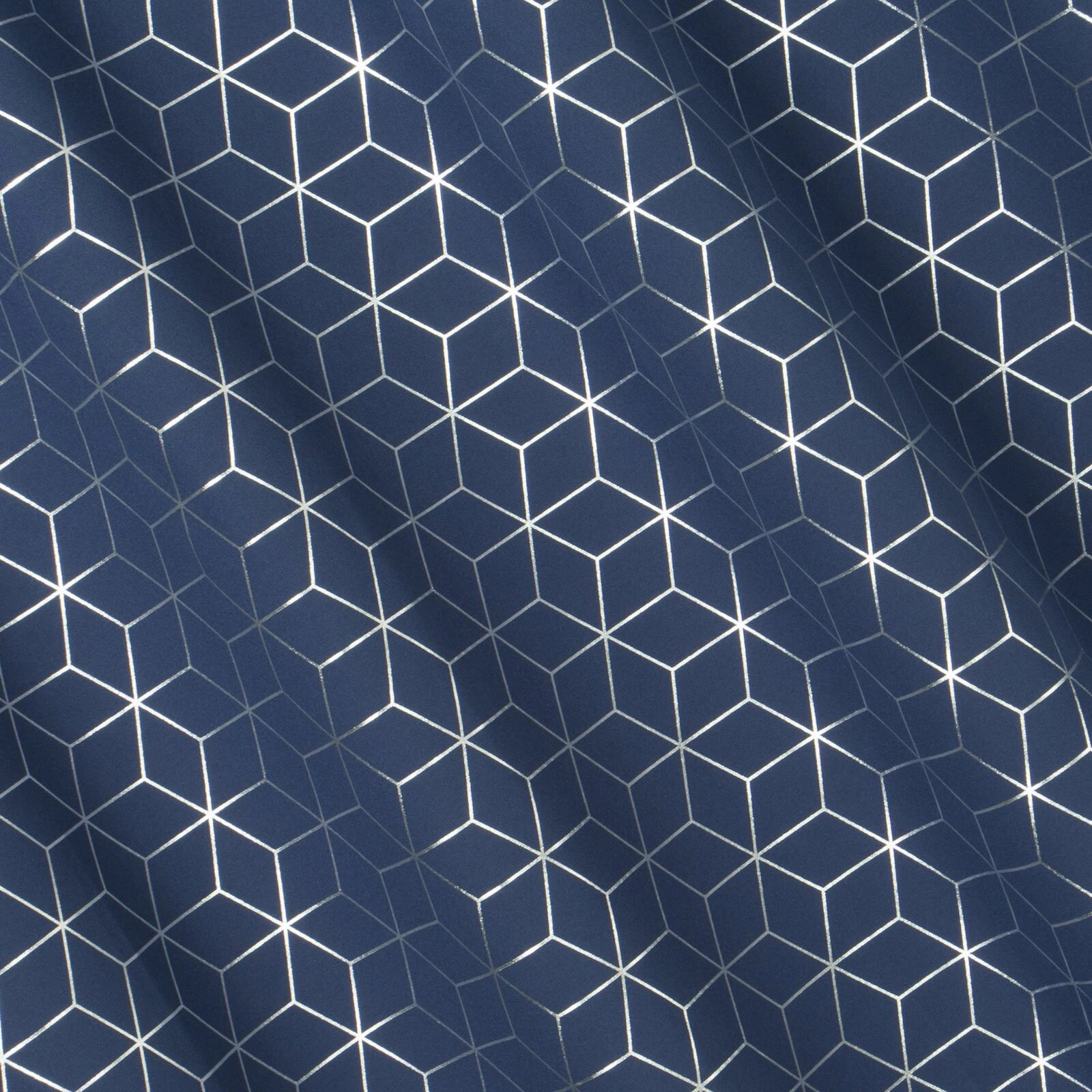 - Zasłona oxford na przeloce z geometrycznym srebrnym nadrukiem szerokość: 140 cm, długość: 250 cm, kolor: granatowy, Gramatura: 140 GSM, Skład: 100% poliester